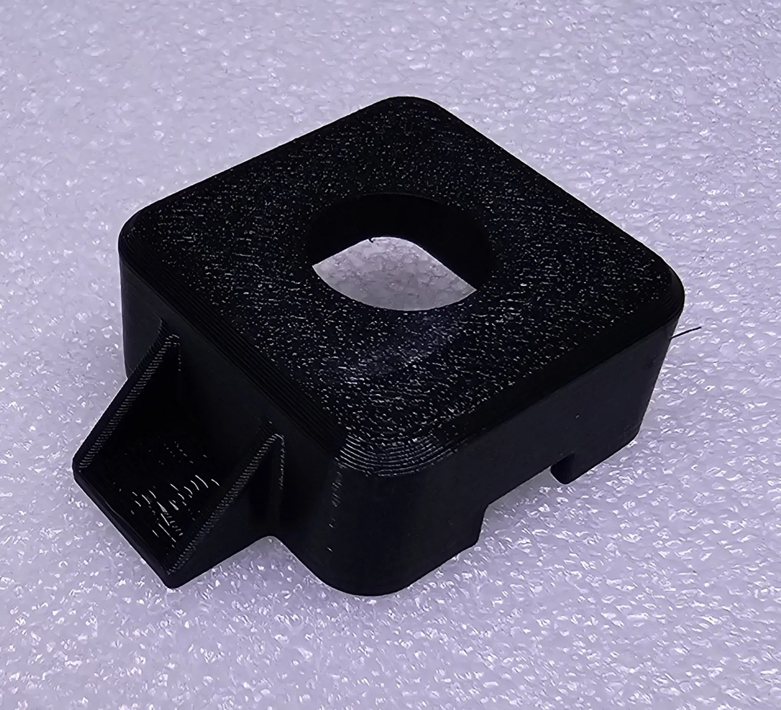 Không cần vật liệu hỗ trợ (supports). Lỗ bắt vít có một lớp đáy đặc, bạn có thể chọc thủng nó khi bắt vít để gắn giá đỡ.