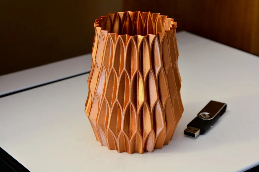 Ảnh chụp lọ được in bằng chế độ "vase mode"/"spiralize" với 1 lớp tường và 3 lớp đáy. File STL là dạng đặc. Mấy mẫu này in ngon lành bằng cả chế độ "vase mode" hay chế độ in thường.