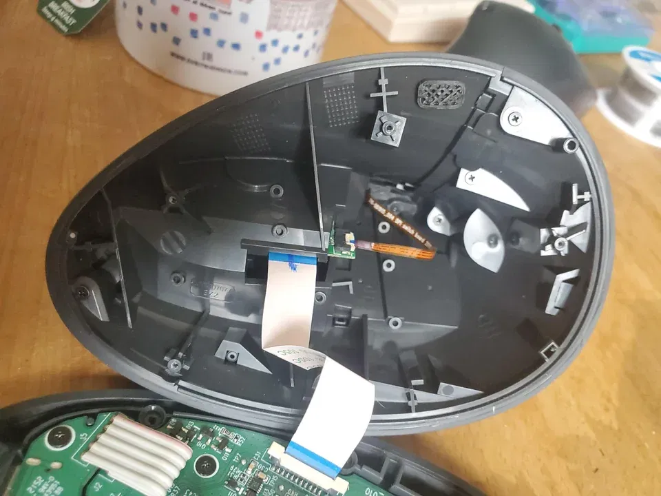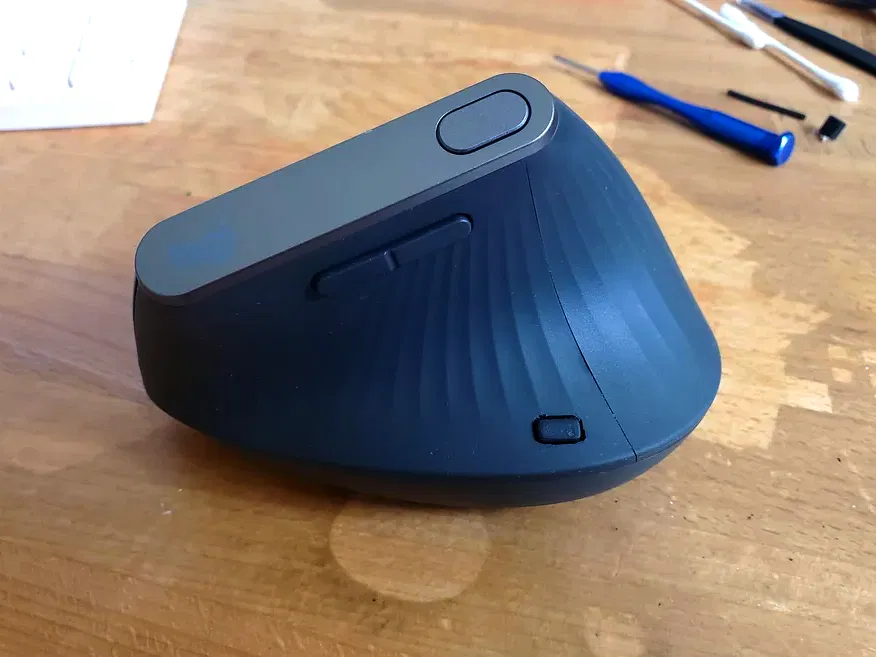 Logitech làm ra mấy con chuột xịn sò, nhưng không hiểu sao dòng MX của họ lại chỉ có nút đổi thiết bị ở dưới đáy. Tôi không thể chịu được cái kiểu đó, nên với con MX Vertical của mình, tôi đã chế thêm một cái nút lên trên.