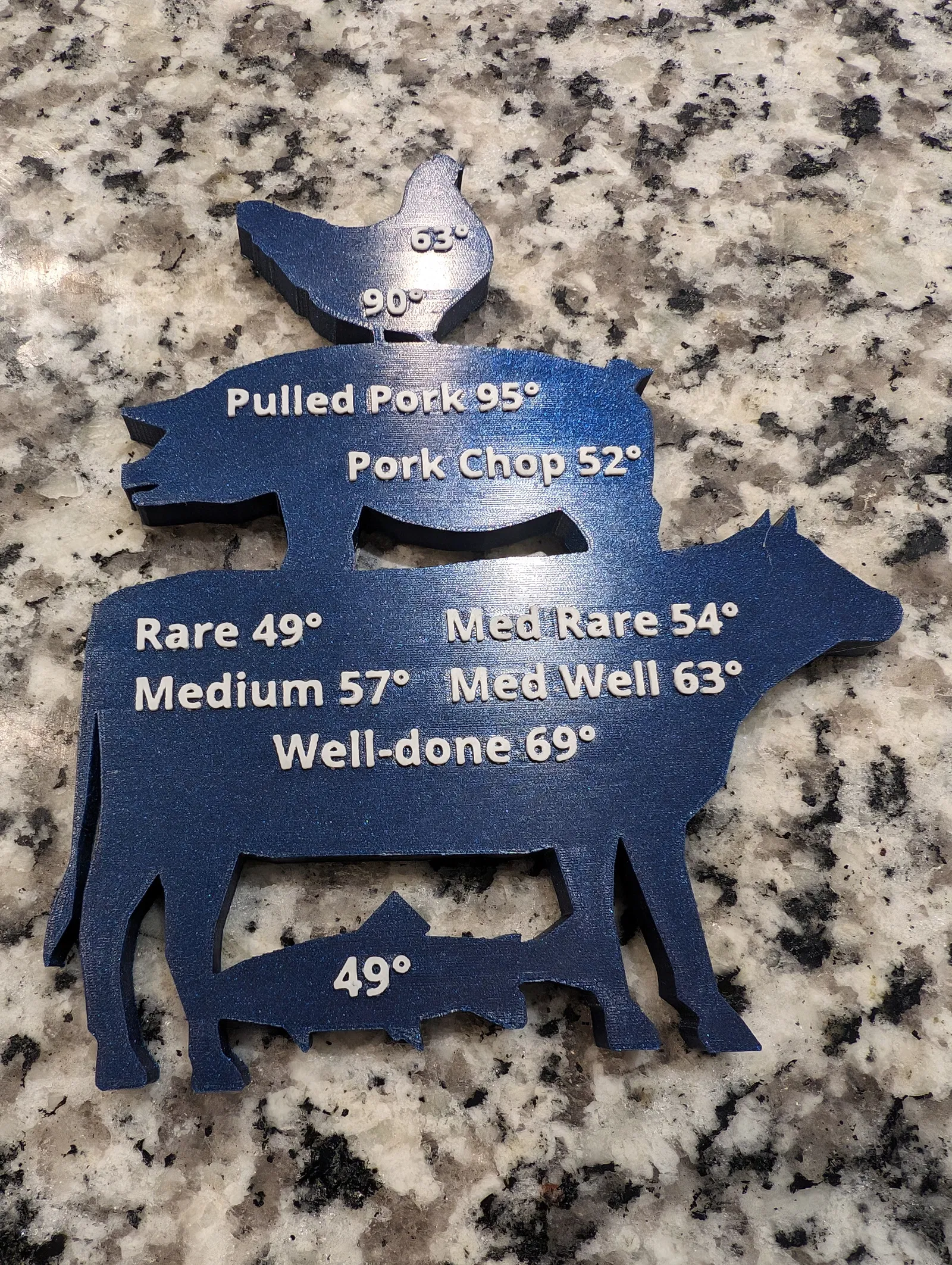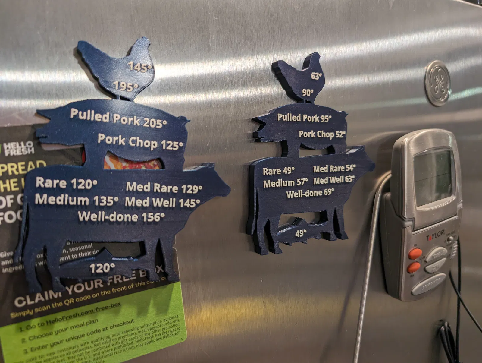 Cần nam châm tủ lạnh để ghi nhớ nhiệt độ nấu ăn ngon, không bị khô như công thức an toàn thực phẩm? Mẫu này có cả độ F và độ C, với nhiệt độ tối ưu cho thịt gà, heo, bò, cá. Dễ in, có file Onshape và STEP, dùng nam châm D6 x 3.5mm.