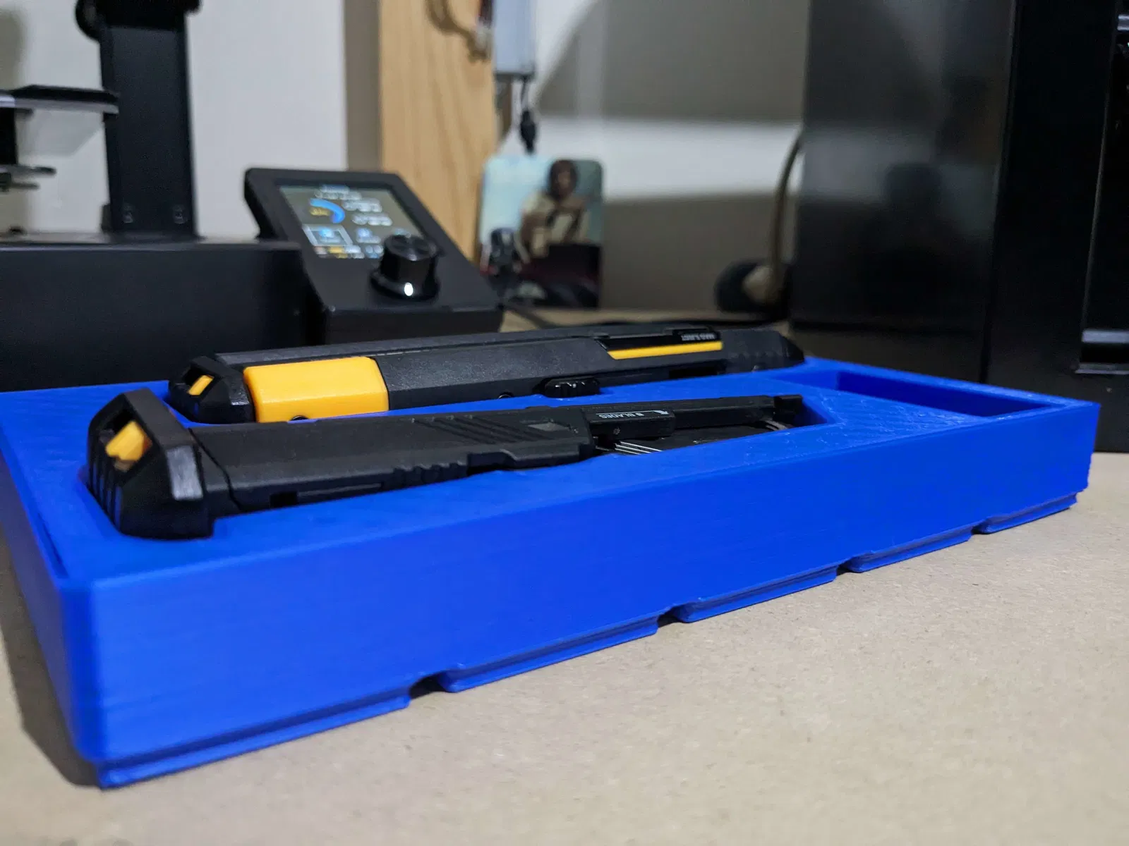 Bộ lưu trữ này đựng dao rọc giấy cùng với hộp đạn, đồng thời có chỗ để cất hộp đạn thứ hai. Tôi không thích lãng phí không gian, vì vậy tôi cũng đã thêm một khu vực lưu trữ hình chữ nhật nhỏ để đựng lưỡi dao dự phòng hoặc các vật dụng linh tinh khác.