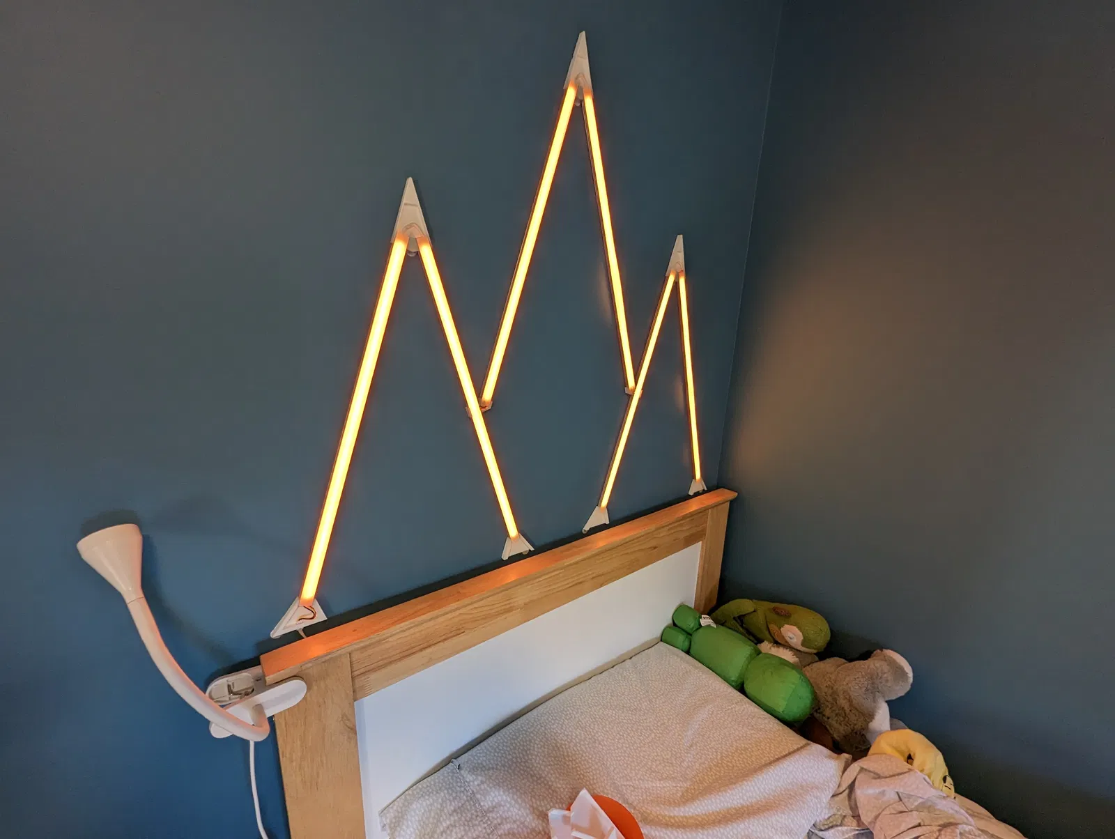Tranh tường hình núi non cho phòng con trai, kiêm luôn đèn đọc sách hoặc đèn ngủ tiện lợi! Dự án WLED đầu tiên dùng ESP32, kết hợp đèn LED RGB, thanh nhôm và đầu nối in 3D.