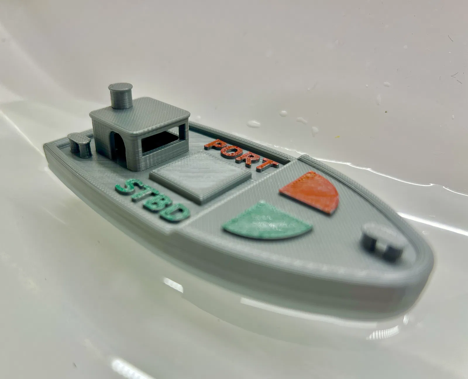 Để dùng được trong bồn tắm, bạn có thể in với mật độ vật liệu (infill) cao hơn để thuyền ổn định hơn. Mức 40% infill tương đương với hình ảnh thuyền đang nổi trên mặt nước.