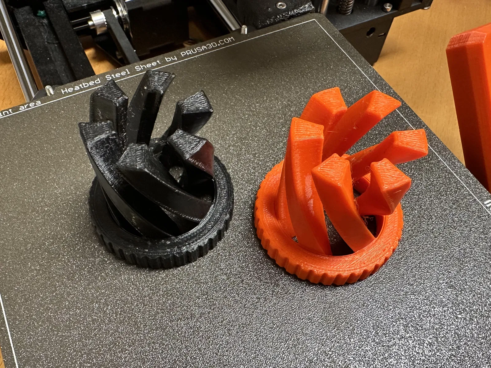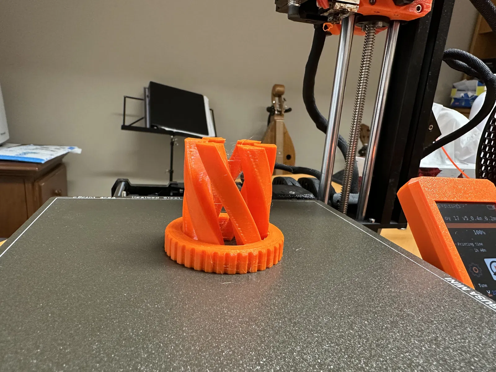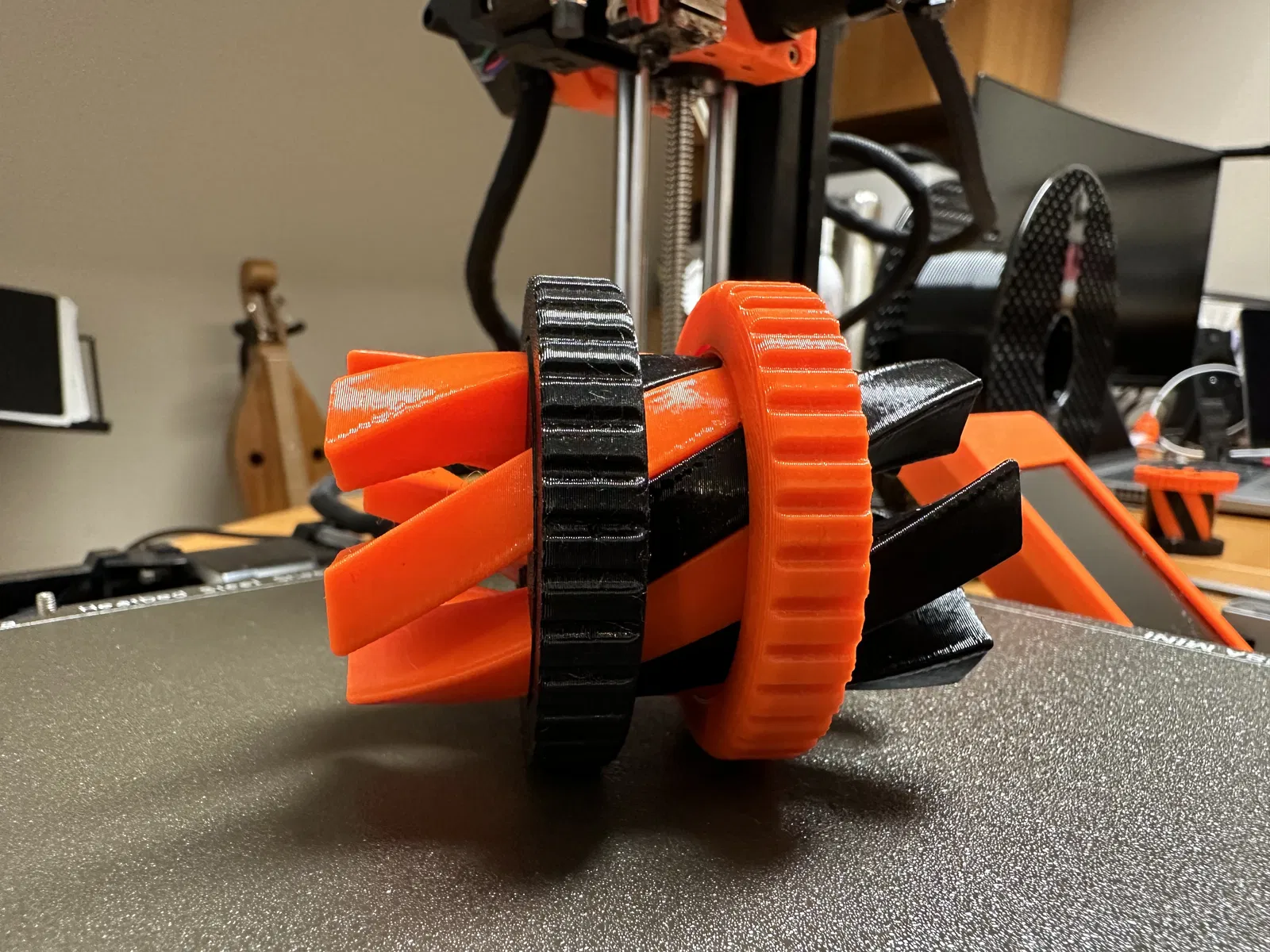 Bản in trong ảnh của tui được in trên máy Mini+ của tui, sử dụng màu cam và đen của Prusament PETG. Mỗi bản in mất khoảng 1h 35 phút ở tốc độ 0.20mm với tính năng Input Shaper mới được bật.