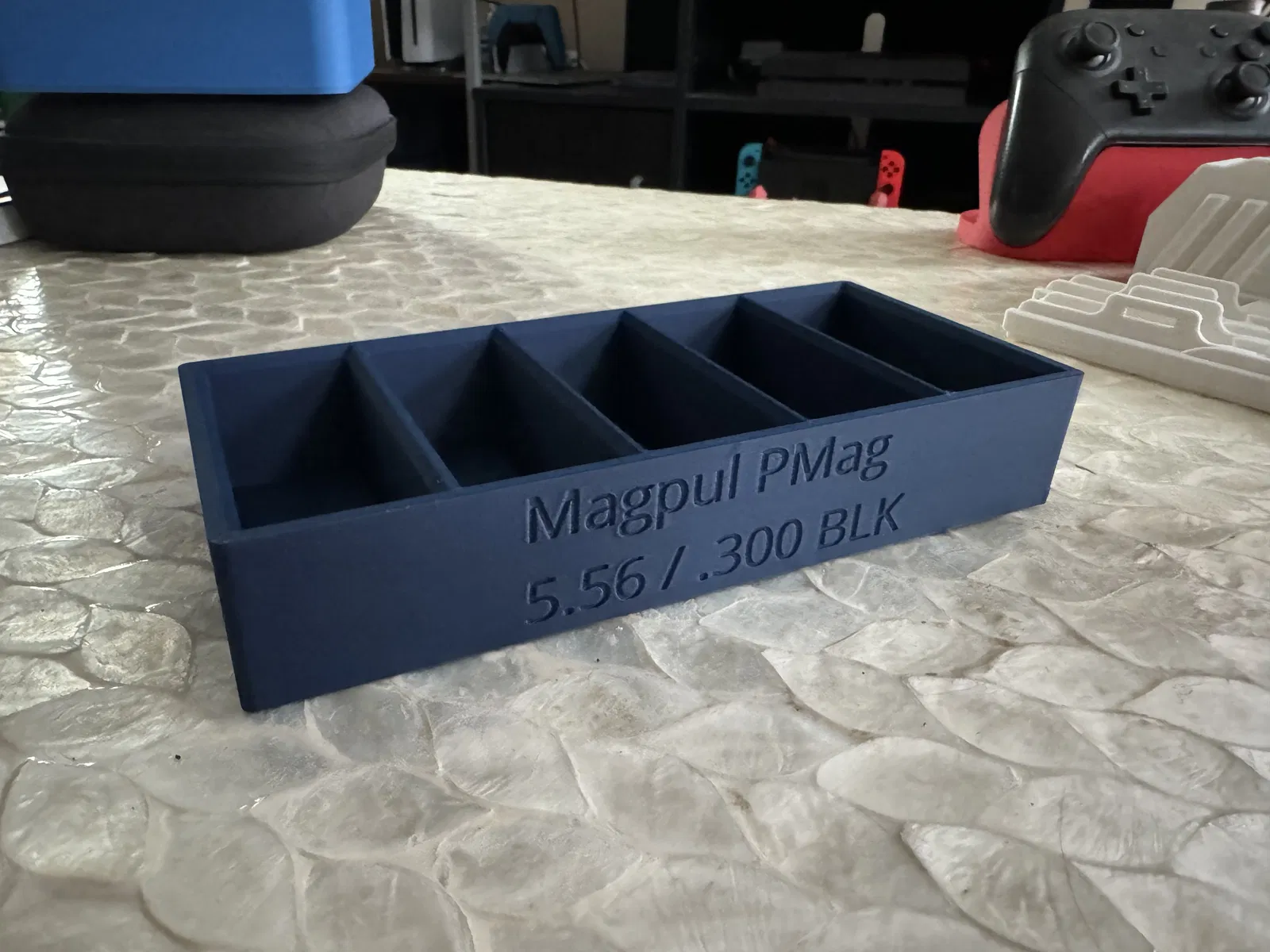 Cái organizer 5 PMAG này là hàng xịn nha. Dùng được cho cả 5.56 và băng đạn .300BLK luôn đó. Bao ngon với băng đạn 10, 20, 30 viên, xài được cho cả đời 2 với đời 3 luôn. In ra không cần support đâu nha. Hàng Lancer Mags cũng xài tốt luôn. Infill 20% là đẹp.