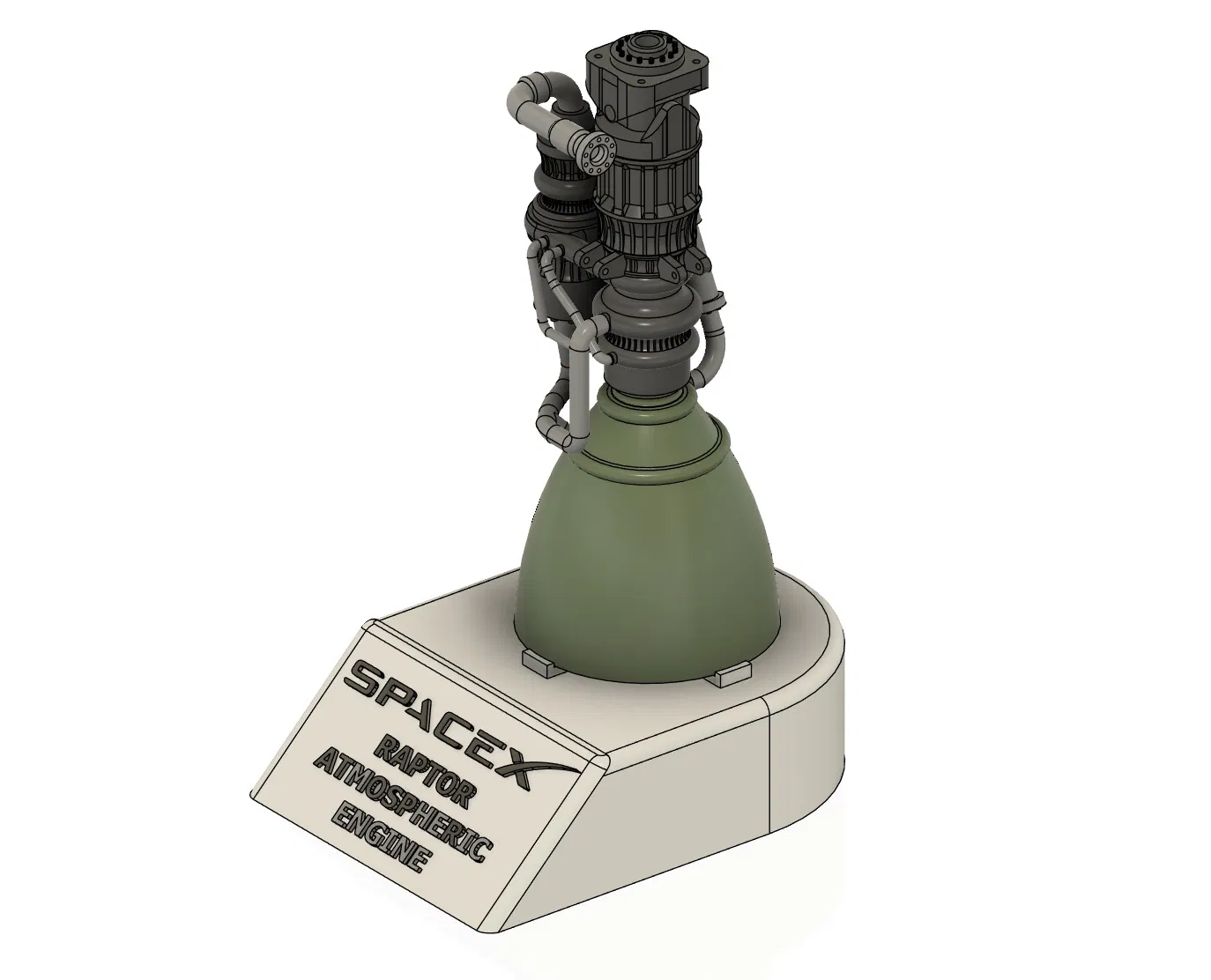 Đây là mô hình động cơ Raptor khí quyển của SpaceX, một bộ phận quan trọng trên tên lửa Starship. Ban đầu được thiết kế cho in SLA tỉ lệ 1:48, mô hình này đã được chỉnh sửa để phù hợp với công nghệ in FDM và có thể tùy chỉnh kích thước. Lưu ý cần dùng supports và keo dán để hoàn thiện.