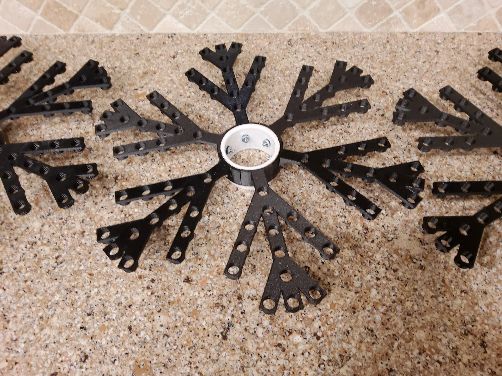 Tôi đã thêm tệp “Snowflake Center.stl” vào Printables. Tuy nhiên, bạn có thể thay thế phần tâm bằng một ống PVC tiêu chuẩn, có đường kính ngoài 70 mm, nếu có sẵn. PVC có thể cứng cáp hơn PETG.