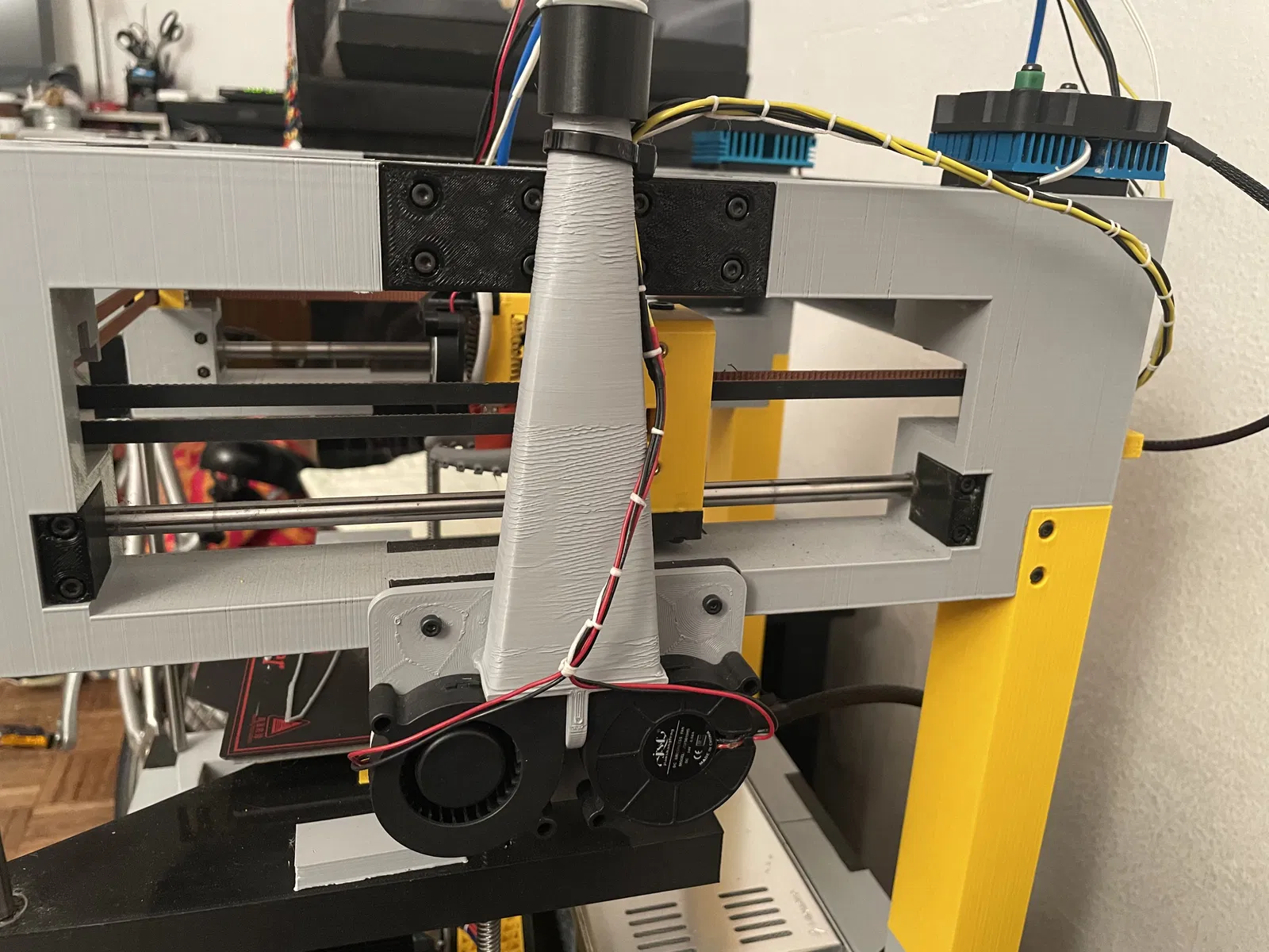 Tui đã thay đổi phần nón của ống dẫn khí (manifold) nhằm mục đích giảm áp lực ngược. Thiết kế này giúp cải thiện hiệu suất hoạt động của hệ thống, đặc biệt hữu ích cho các thiết bị CPAP và sử dụng quạt 5015.
