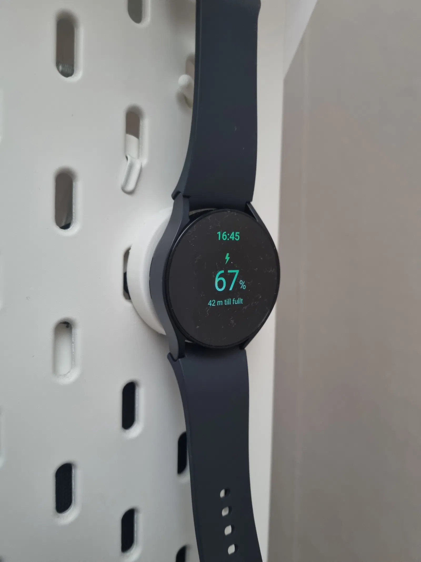 Một cái giá đỡ sạc đơn giản cho Samsung Watch 6, gắn vừa vặn vào bảng pegboard IKEA Skadis. Dễ dàng in và lắp đặt, giúp bạn sắp xếp gọn gàng phụ kiện smartwatch.