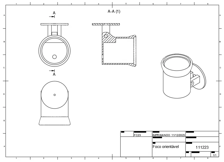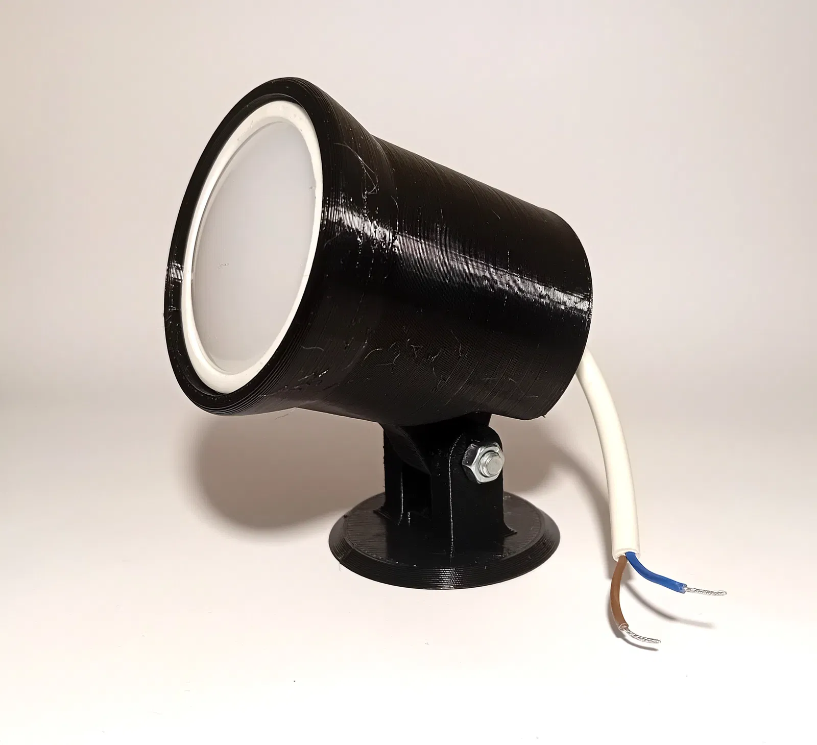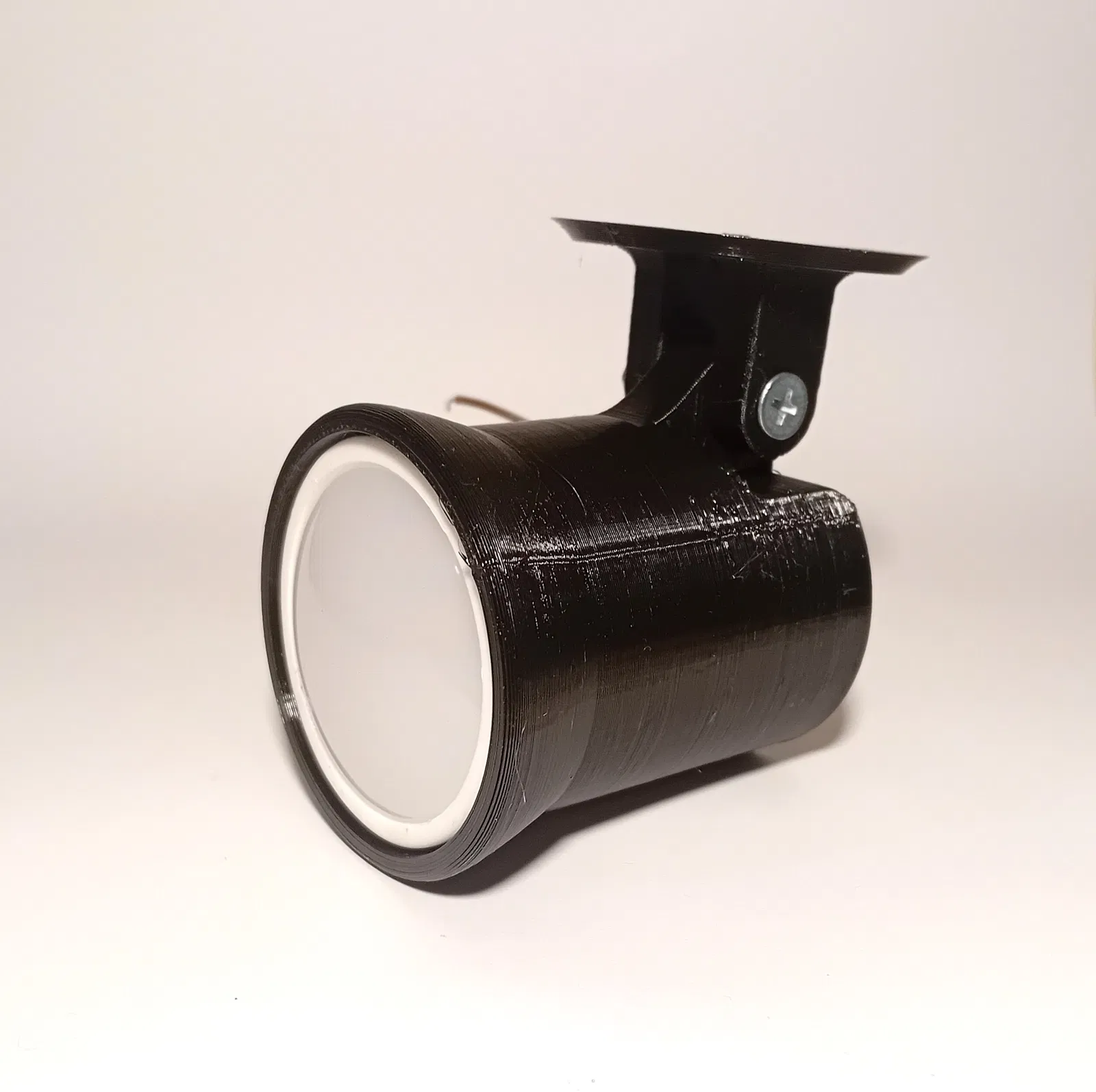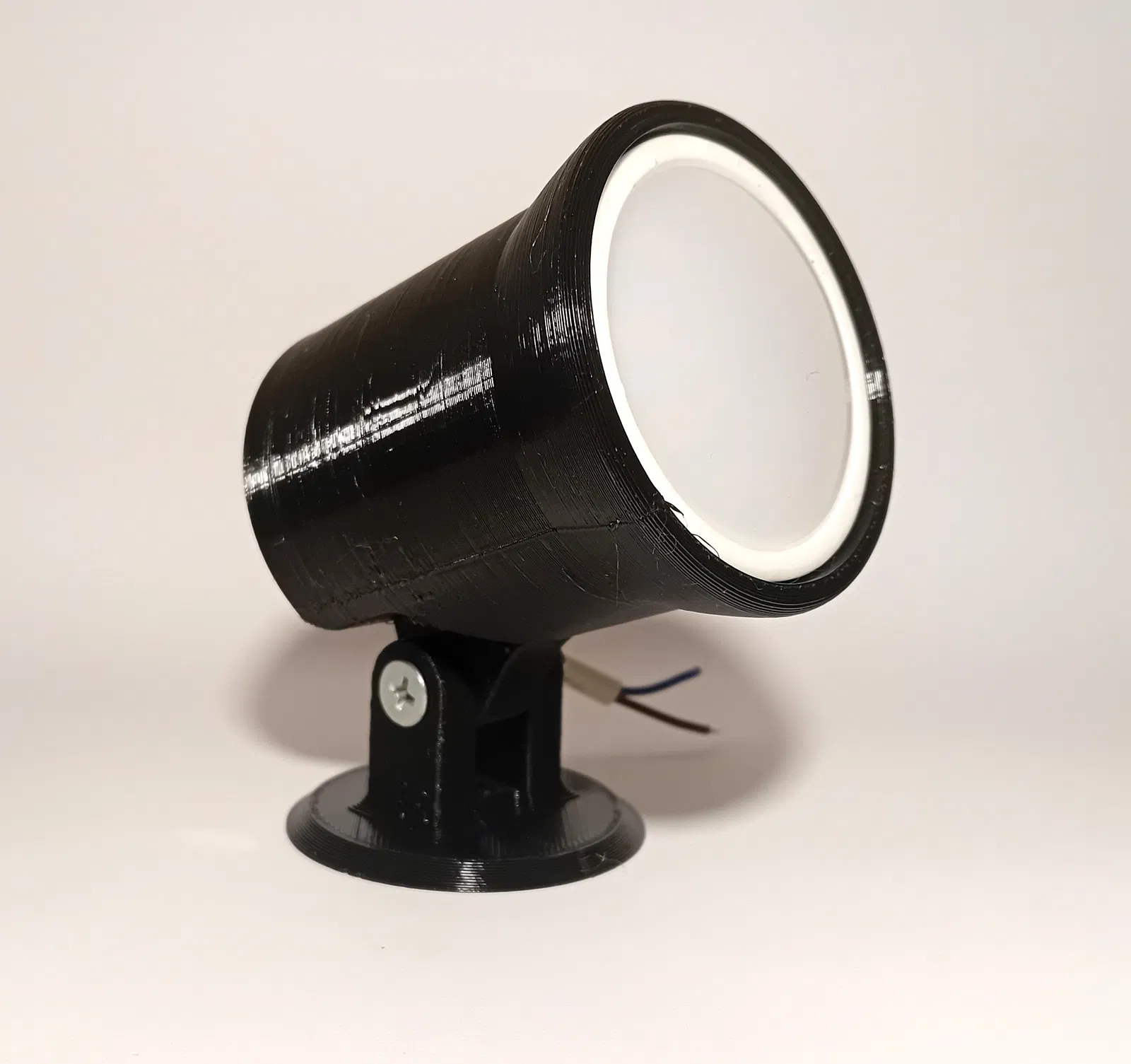 Đèn Foco LED xoay 360 độ, hoàn hảo cho phòng khách và nhà bếp. Hỗ trợ in bằng PLA, PETG, ABS. Yêu cầu 20% infill, support và độ phân giải 0.2mm. Lắp ráp với đèn LED âm trần 50mm, vít M5 và vít gỗ.