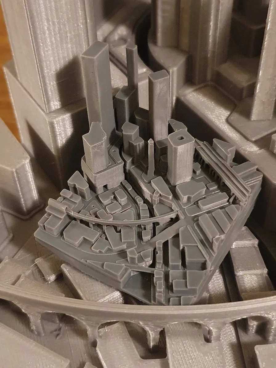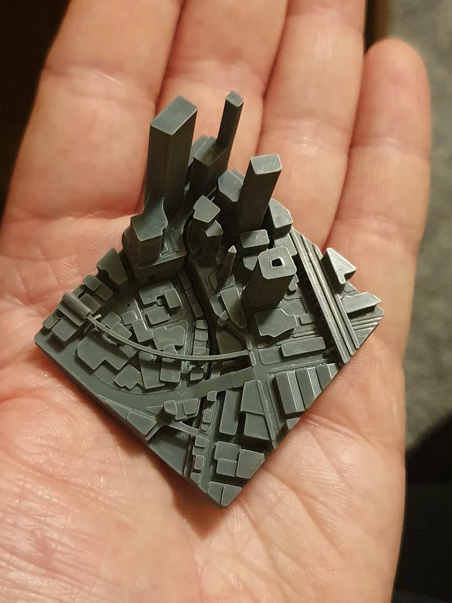 Là một phần của cảnh quan đô thị dựa trên không có gì cụ thể. Tui làm xong trong vài tối, lúc nhỏ tui mê vẽ bản đồ lắm nên giờ quyết định làm một cái 3D. Tỷ lệ 175*175 để vừa khít với Prusa Mini, không cần supports. Bạn có thể scale nó tùy thích. In được cả trên máy resin, tui đã thử và nó chạy ngon lành (đừng để ý mấy cái layer shift trong hình của tui, tui quên siết chặt cái build plate).
