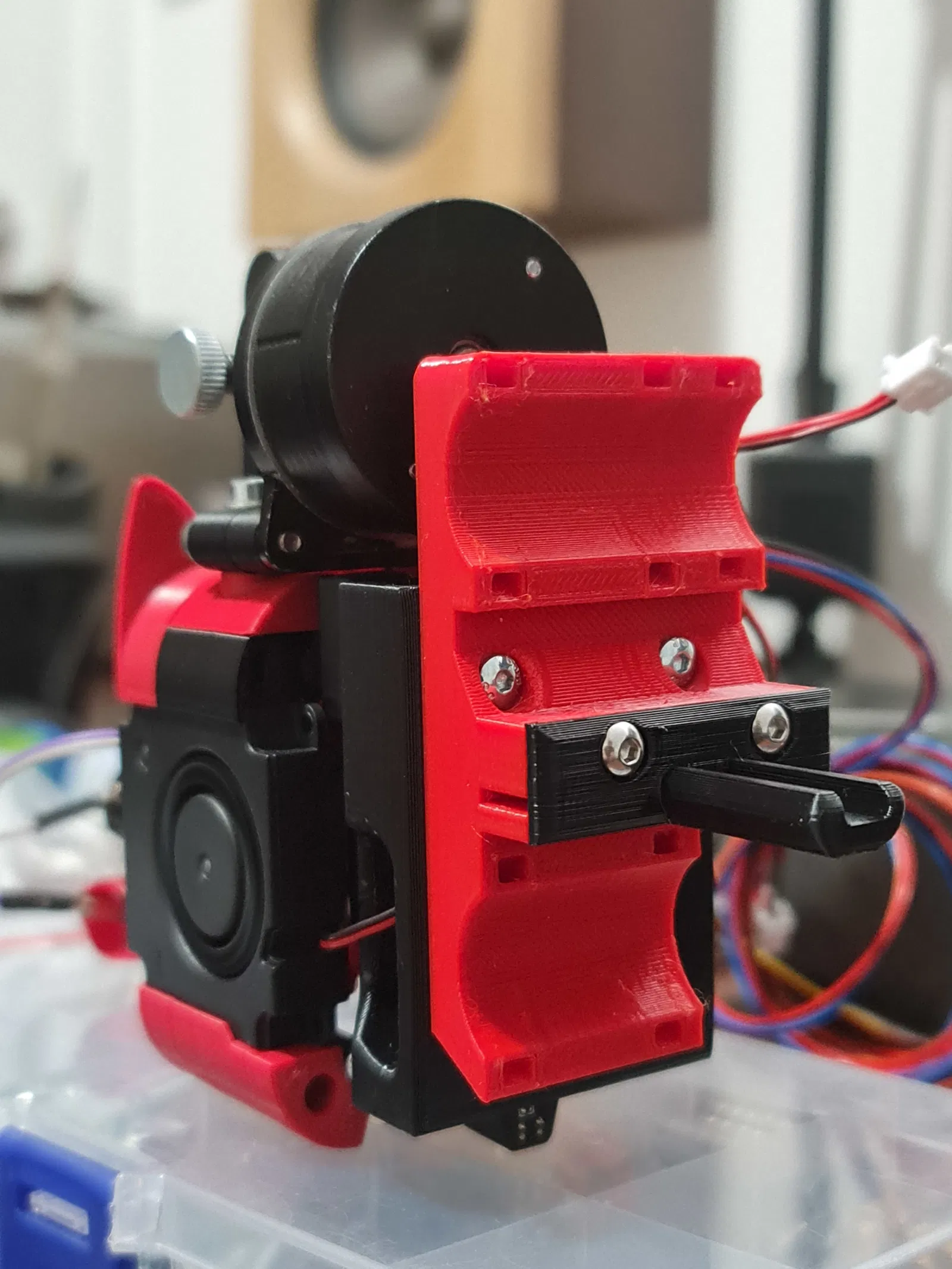 Trong lúc làm những nâng cấp khác nhau đó, tôi cũng muốn thay đổi cái đầu in (toolhead) nguyên bản nặng nề bằng thứ gì đó nhẹ hơn. Ban đầu tôi dùng bản clone của Prusa MK3, nó cũng không tệ, nhưng tôi vẫn đang tìm kiếm thứ khác.
