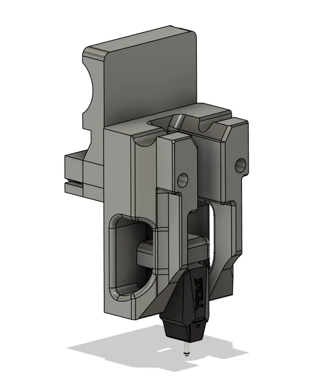 Đối với đầu in, tôi quyết định lắp DragonBurner lên máy của mình, loại này thường thấy trên các máy Voron coreXY nhỏ hơn. Tôi cũng muốn cuối cùng thêm khả năng ABL (tự động căn mặt bàn) cho máy in vì nó không có sẵn và vì vậy tôi đã thiết kế ngàm (mount) để nó có thể lắp vừa đầu dò siêu nhỏ Biqu Micro Probe v2.
