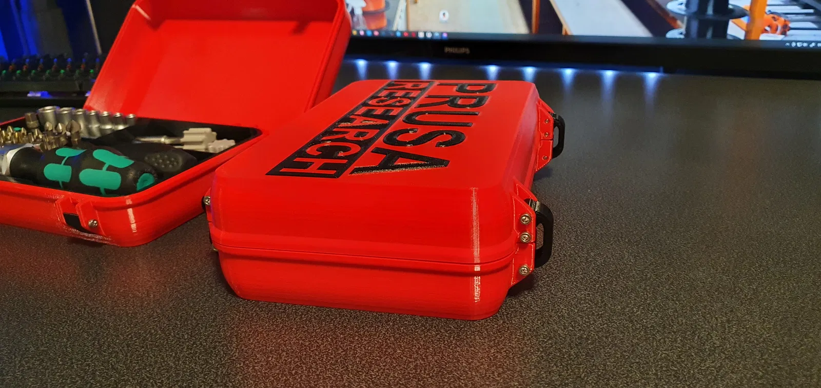 Hộp đựng Prusa Toolbox 2 tầng, remix từ mẫu Great Rugged Box, với bản lề và chốt cải tiến. Có 2 mẫu insert, có thể in bằng PETG hoặc ABS. Phiên bản mới có nắp và đáy tùy chọn.