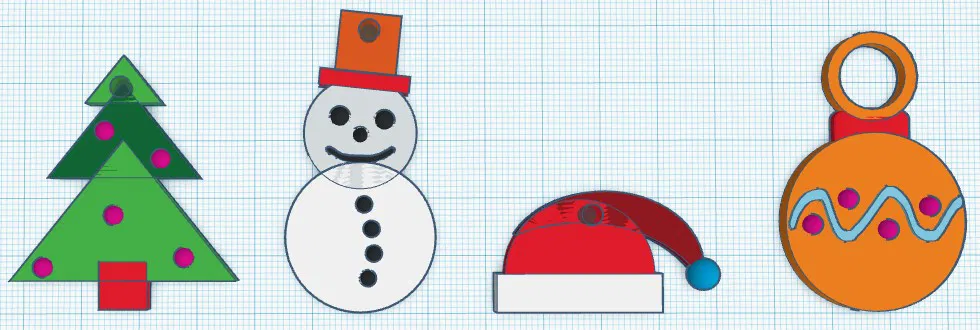 Tạo móc khóa cho Giáng Sinh bằng các hình khối đơn giản. In với các lớp mịn, do kích thước của các hình.