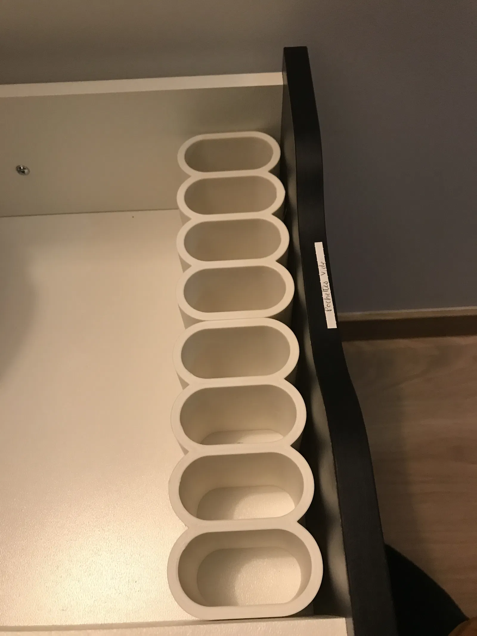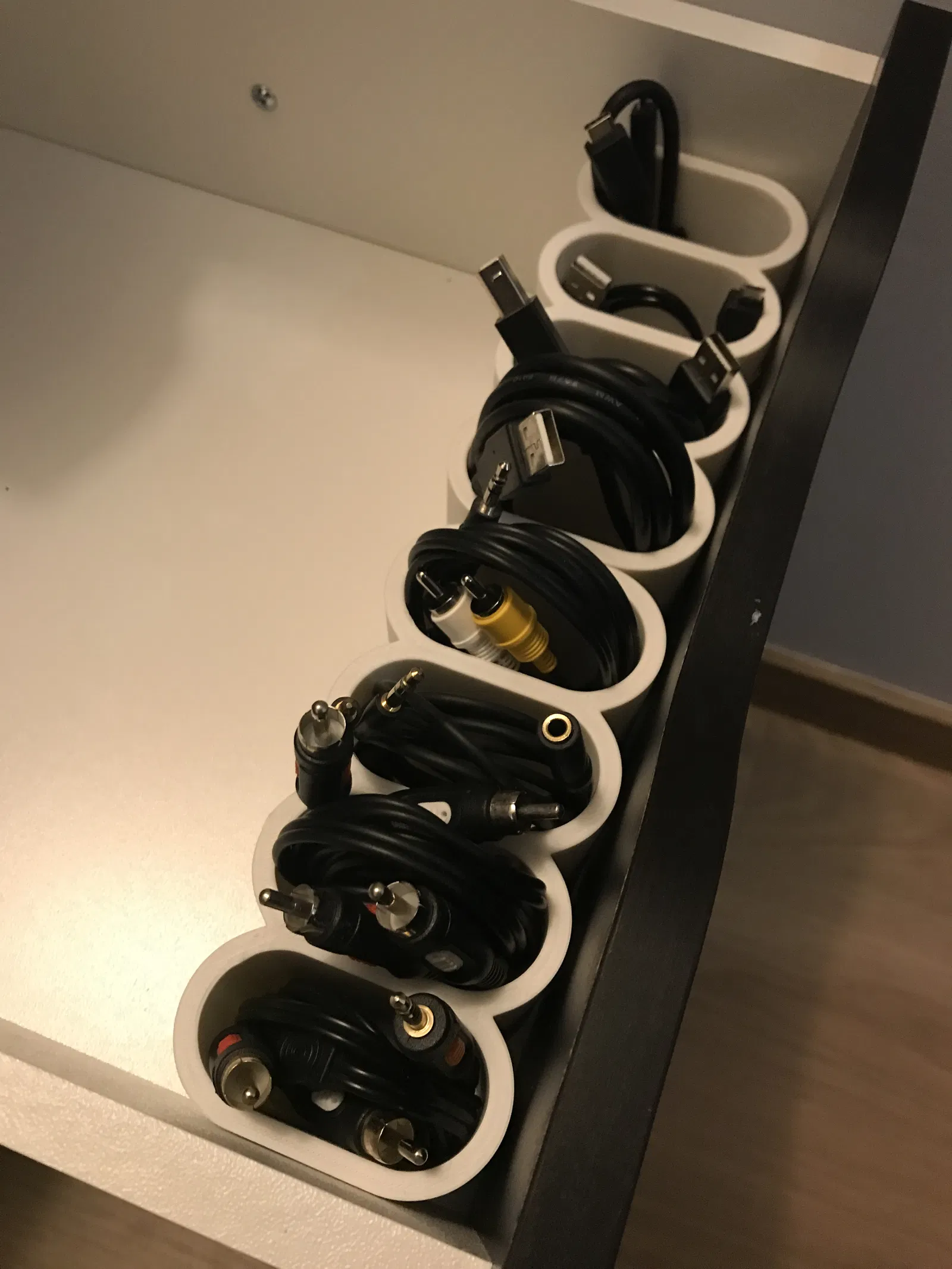 Mẫu này được thiết kế đặc biệt cho các dòng tủ IKEA ALEX. Đơn giản và tiện dụng, mẫu này khi in ra làm hai bản sẽ giúp bạn cất giữ được 8 sợi cáp, giữ cho không gian làm việc của bạn luôn gọn gàng.
