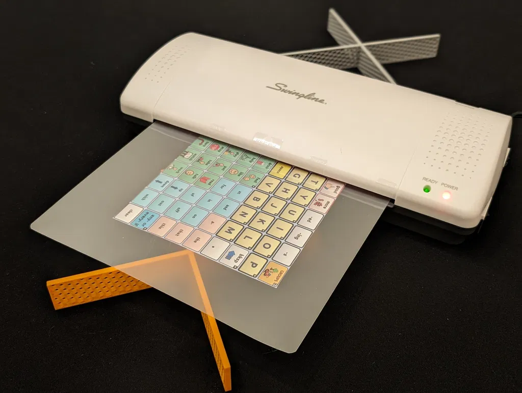 In cái này ra, nó sẽ tạo thành hình chữ "X" khi lắp ráp, và bạn có thể dùng nó để giữ giấy (cả đầu vào và đầu ra) cho máy ép plastic (Swingline 1701857). Các máy ép plastic khác cũng có thể dùng được, nhưng bạn có thể cần chỉnh lại chiều cao cho phù hợp.
