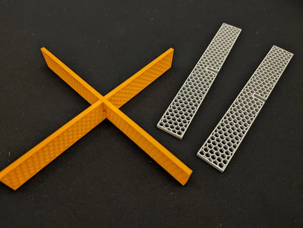 Bạn cần in 2 cái cho mỗi giá đỡ, sau đó chúng sẽ dễ dàng lồng vào nhau để tạo thành hình "X". Nếu bạn muốn cả đầu vào và đầu ra, bạn sẽ cần tổng cộng 4 cái.