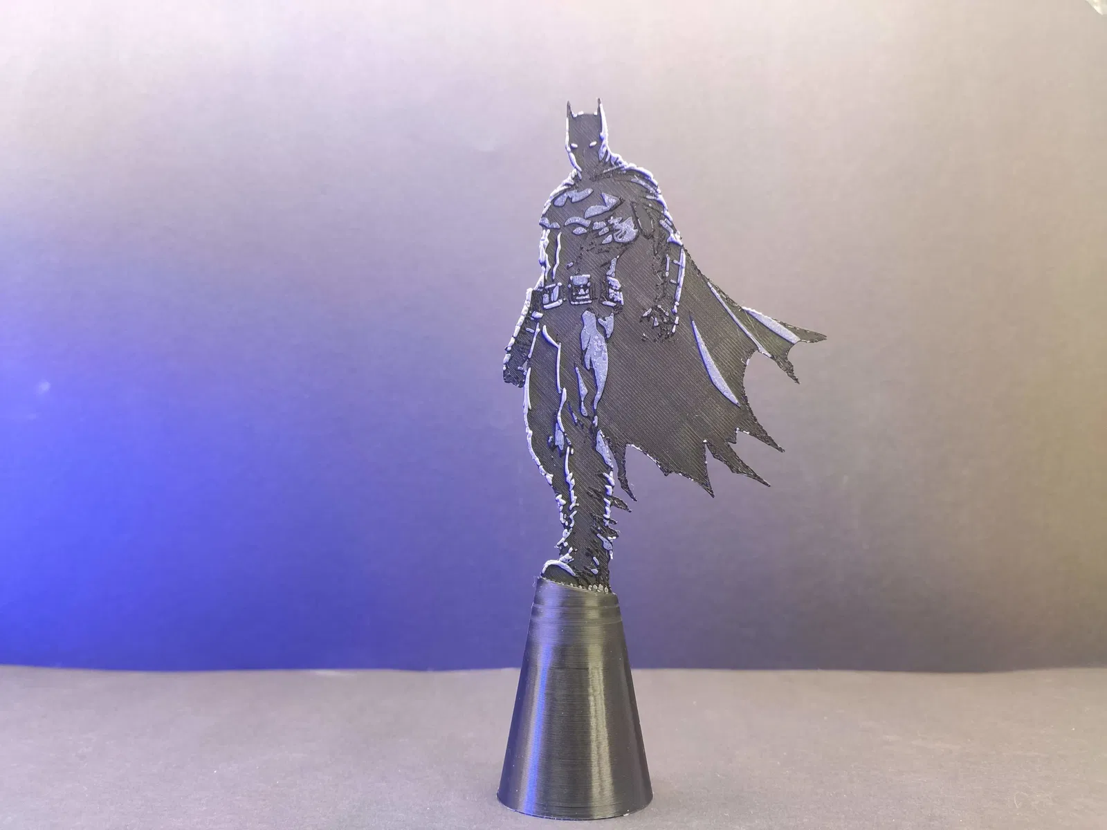 Tượng Batman hueforge kèm đế, có thể dùng làm phụ kiện trang trí cây thông Noel hoặc đặt ở bất cứ đâu. Có 2 loại đế (rộng và hẹp). Hướng dẫn in chi tiết với màu sắc gợi ý.