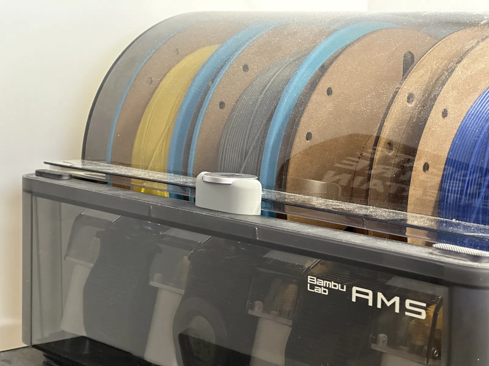 Nắp nâng AMS đơn giản này giúp nâng nắp lên khoảng 10mm, cho phép chứa các spool lớn hơn hoặc spool bị nhảy. Thích hợp cho PLA và các loại filament không hút ẩm do AMS không còn kín.