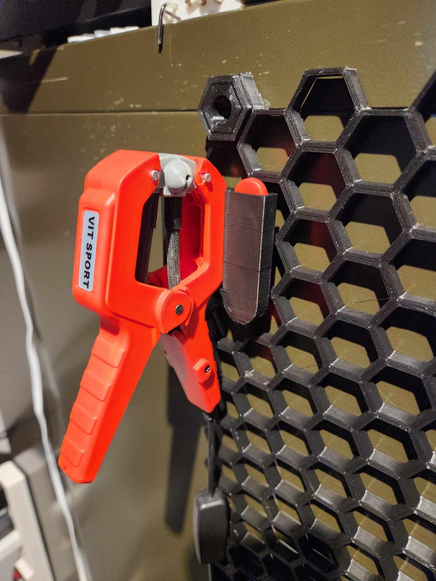 Tui tạo ra cái giá treo đơn giản này để đựng cục nối filament của mình, giúp không gian làm việc gọn gàng hơn và dễ dàng truy cập.