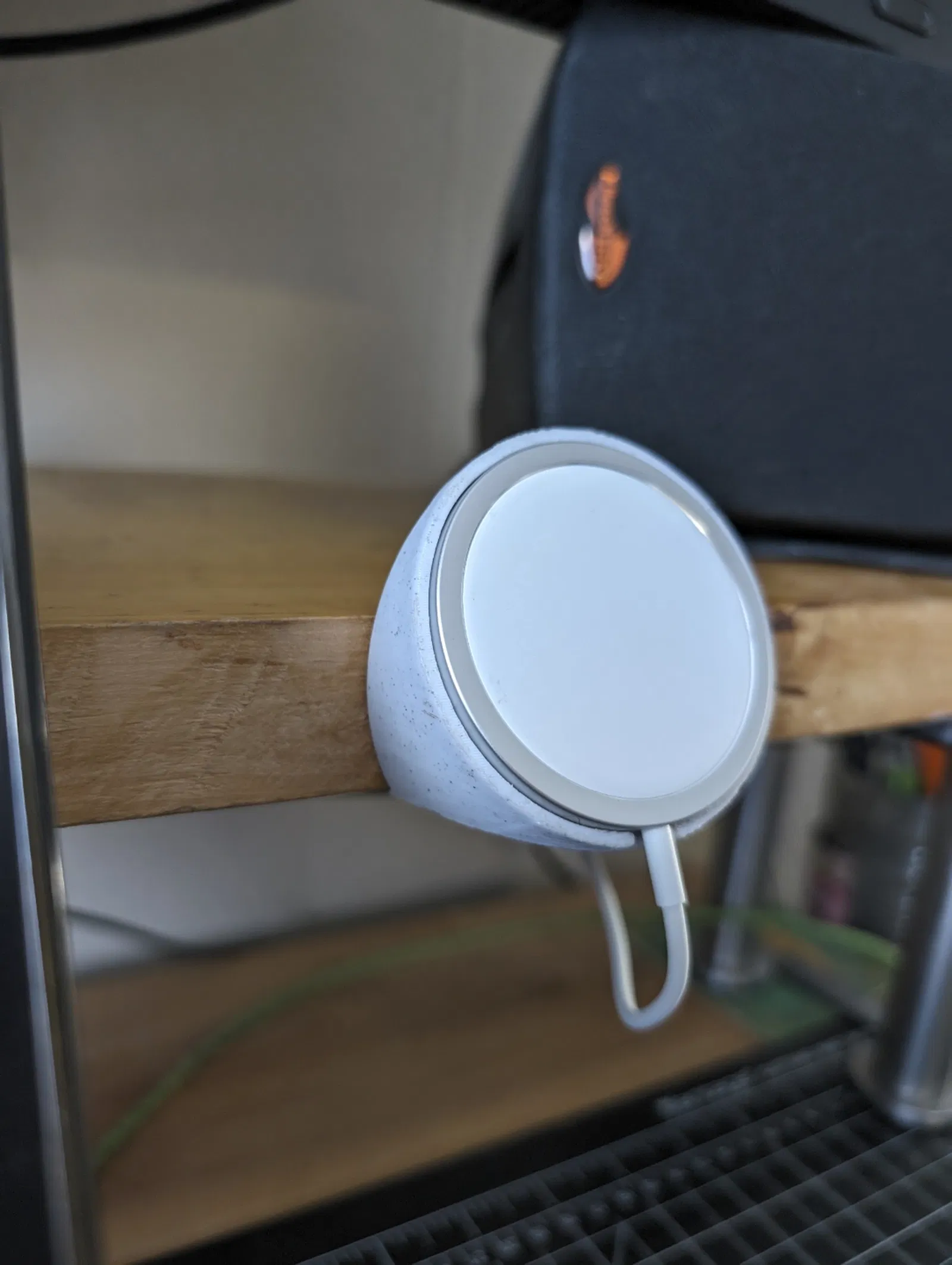Tui cần một cái đế để gắn sạc Apple MagSafe lên cái kệ trên bàn làm việc nên tui nghĩ ra cái này. Lỗ vít thì vừa với ốc gỗ loại #6.