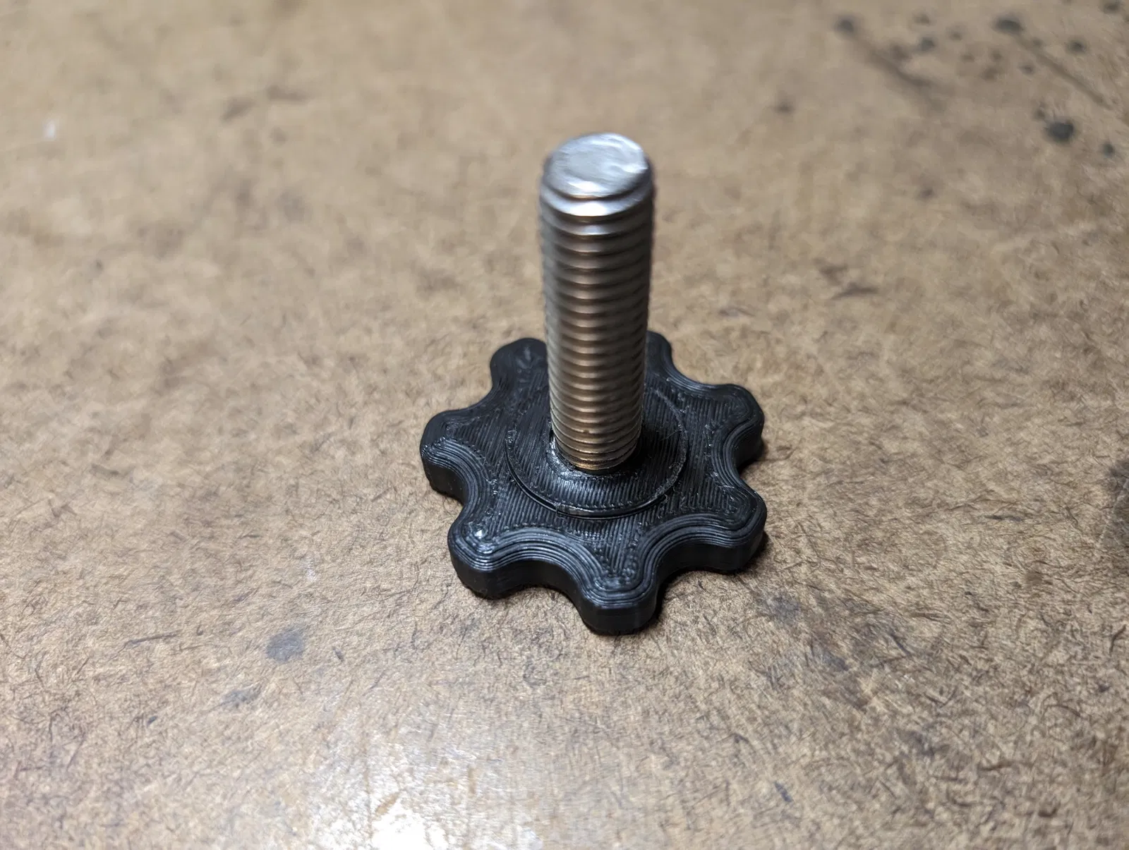 Phiên bản chỉnh sửa từ thiết kế cũ, kiểu dáng thấp hơn. Biến bu lông hoặc đai ốc lục giác 3/8-16 thành núm vặn tiện dụng. Một món đồ nhỏ nhưng hữu ích cho bộ sưu tập công cụ của bạn.