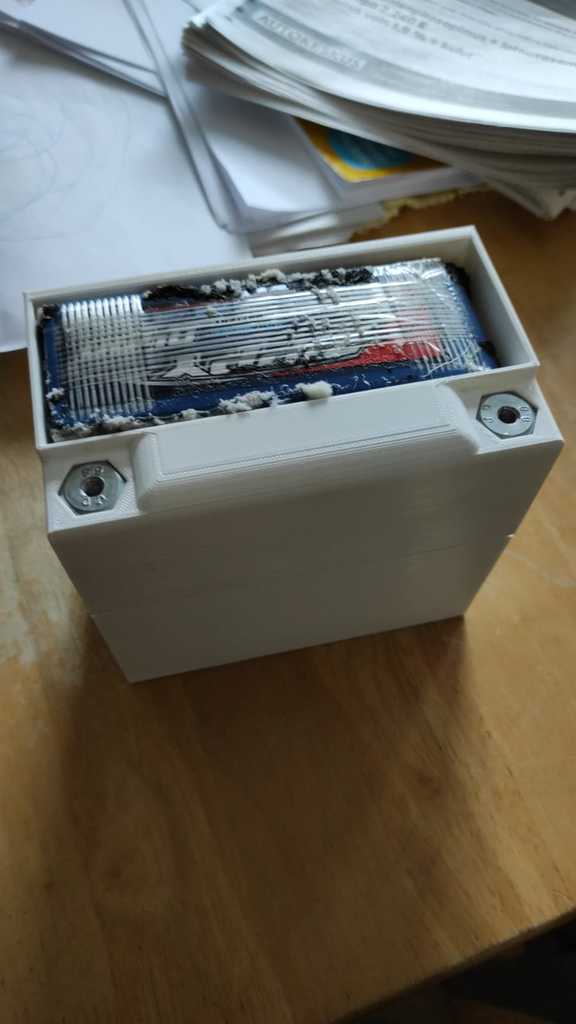 Vỏ pin LiFePo dùng cho xe máy. Sản phẩm này dùng để chứa 2 viên pin và bạn cần chuẩn bị 2 bu lông cùng với việc tạo ren bên trong chúng để sử dụng làm đầu nối cho pin.