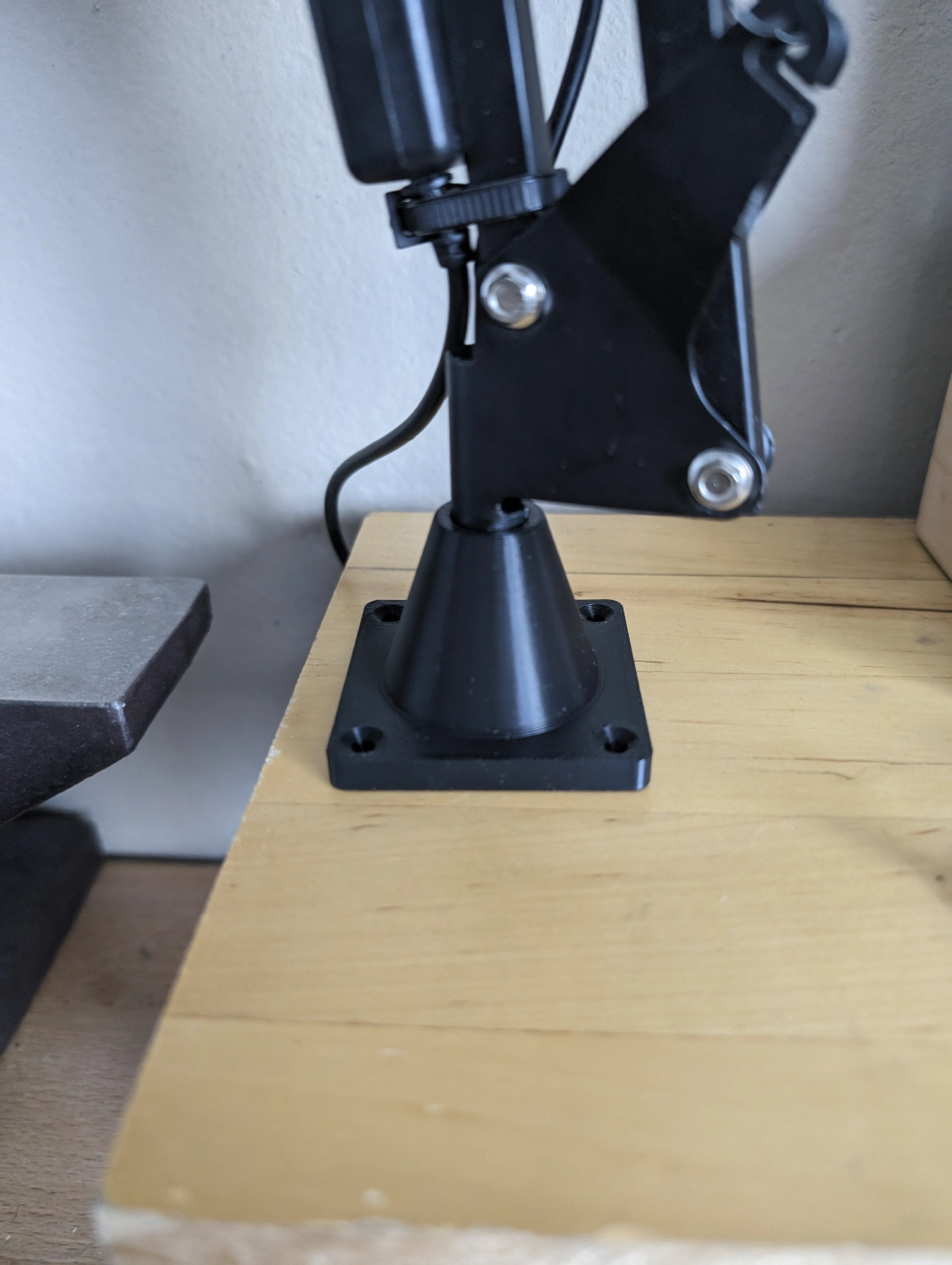 Một đế có thể vặn xuống bàn hoặc kệ để sử dụng với "đèn kiến trúc" có khớp nối, nó có dạng trượt nên vẫn có thể xoay khi lắp vào đế.