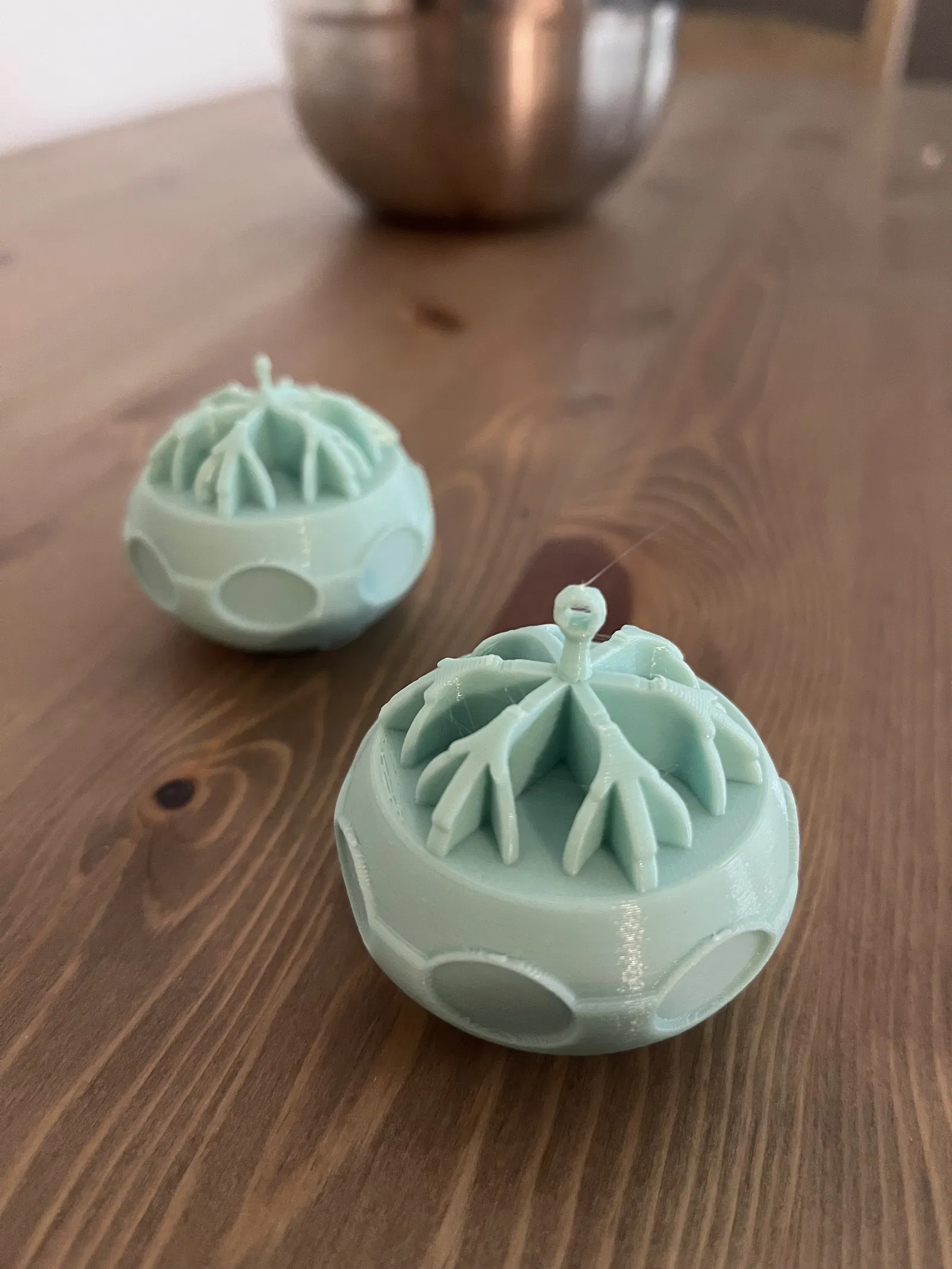 In "XmasSpheroidicalFlake", cái này in dễ lắm luôn, không cần support đâu nha. In cái mặt phẳng hướng lên chỗ móc á, xài PLA, độ dày layer 0.2 rồi cho tui biết cảm nhận của ông/bà nha.