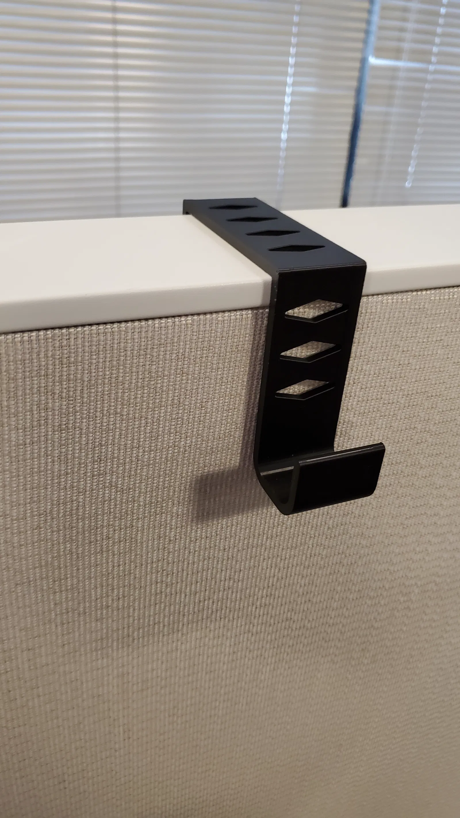 Móc treo này được thiết kế riêng cho tấm tường văn phòng khoảng 77mm, với độ khít lỏng, phù hợp để treo áo khoác hoặc túi xách nhỏ. Làm từ PLA, không cần hỗ trợ.