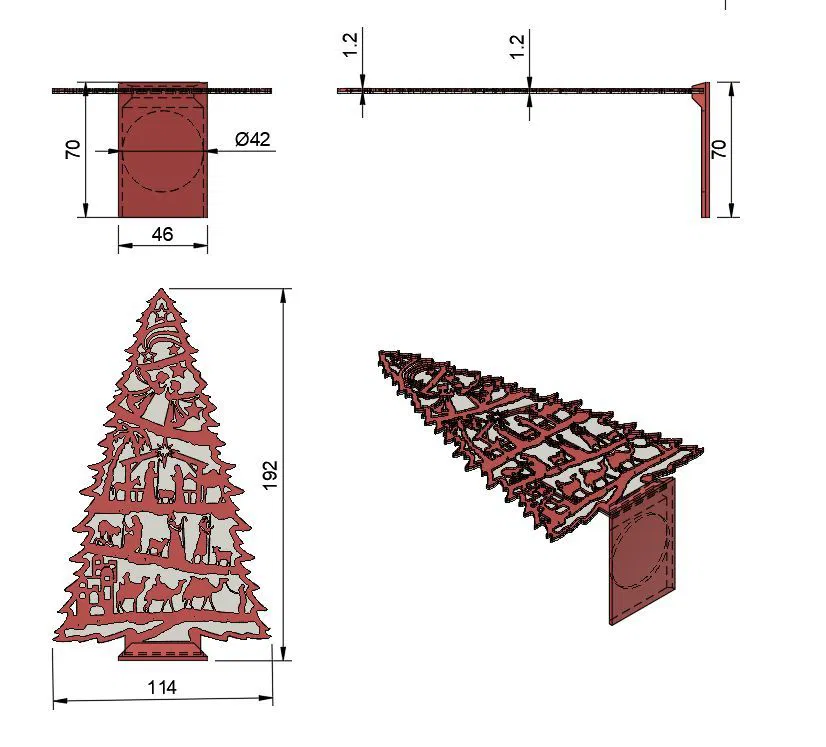 Xin cảm ơn https://www.dxfdownloads.com/free-2d-christmas-tree-cut-file/ đã cho mình ý tưởng. Cây thông gốc cao 192mm, cây mình làm cao khoảng 270mm. Mình có chỉnh sửa kích thước bằng slicer nên bạn cứ tùy chỉnh theo kích thước bạn muốn nha.