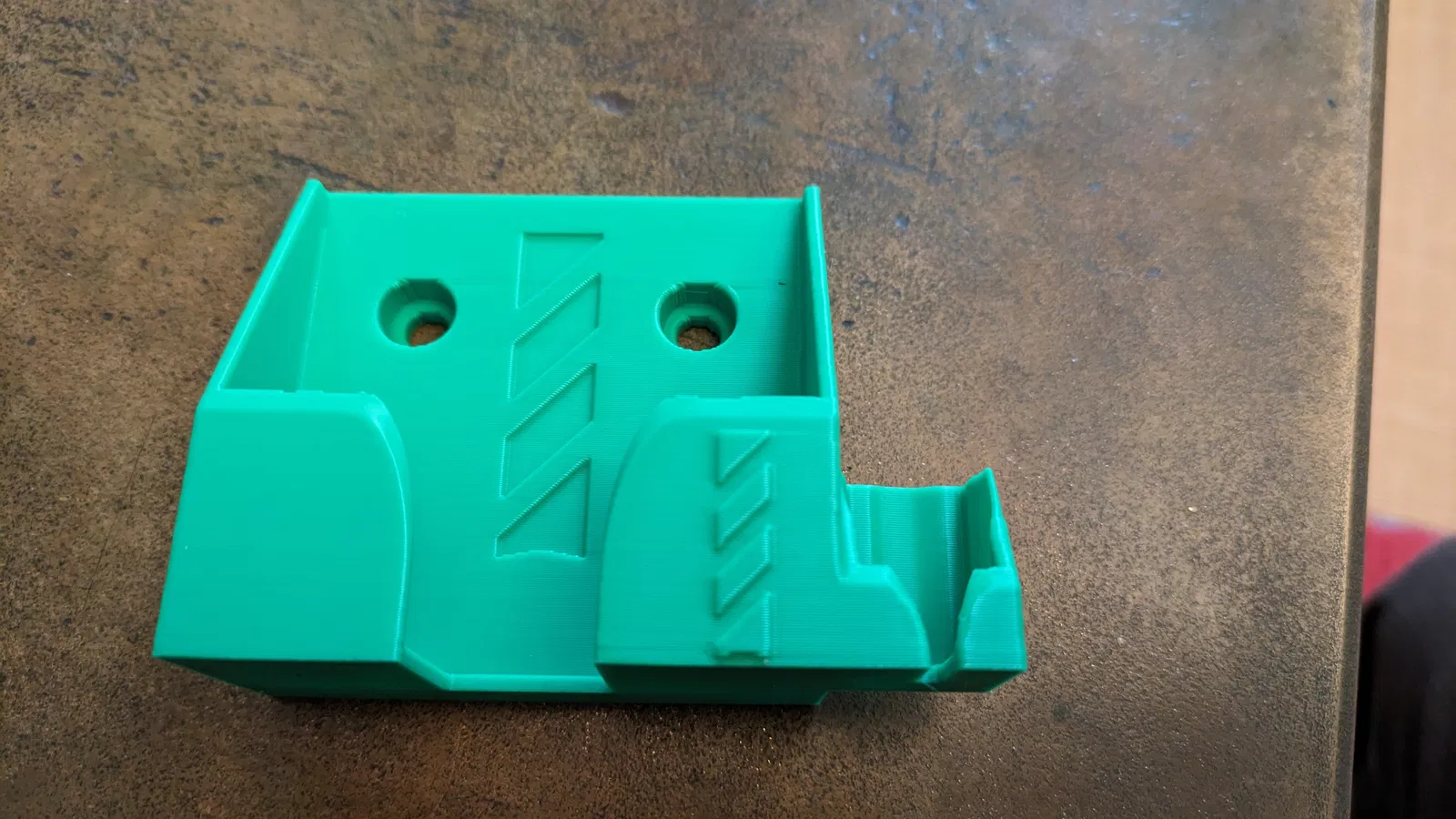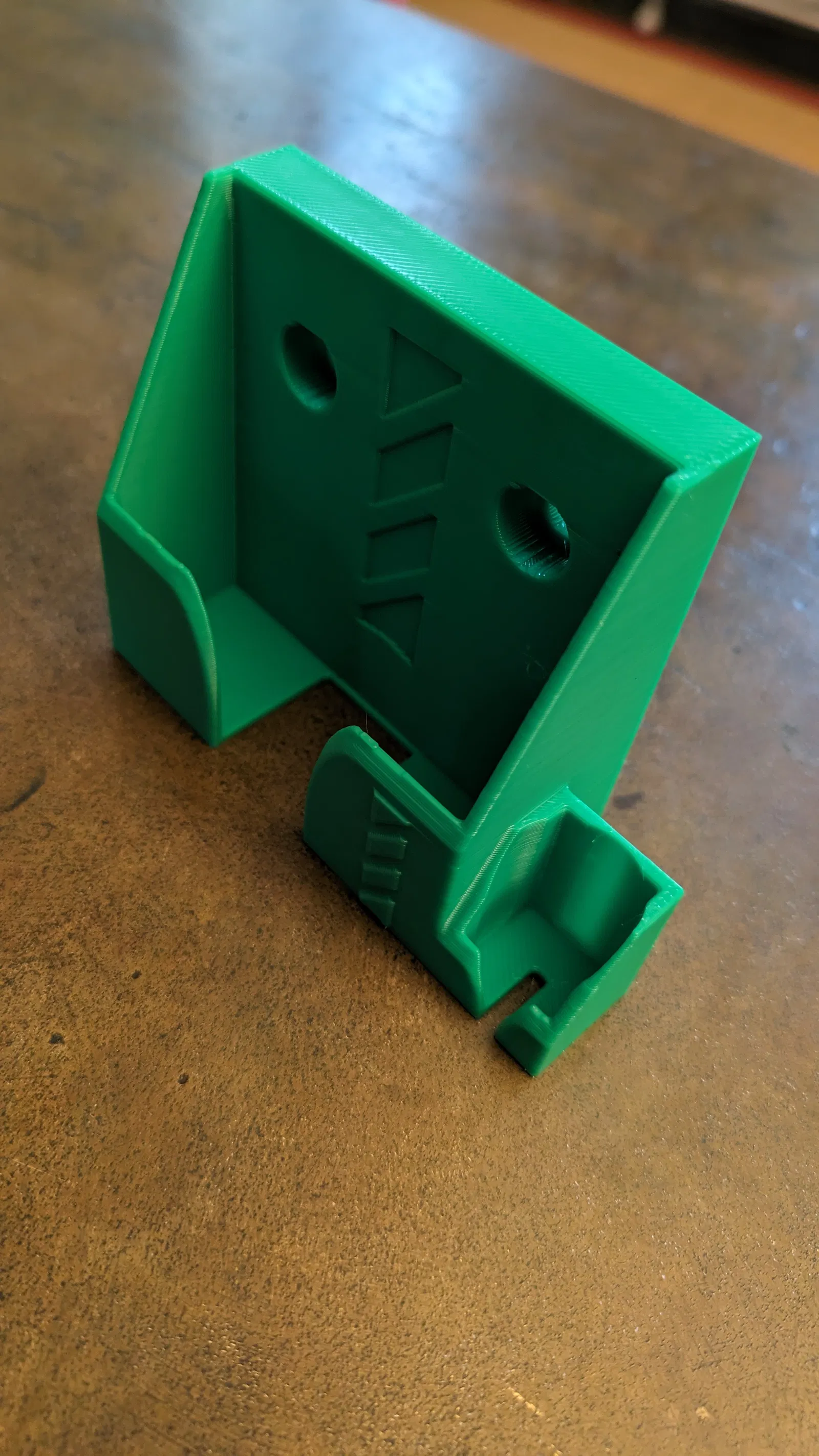 Giá đỡ đầu dò này dành cho máy CNC Onefinity, được in bằng vật liệu PLA với cấu hình mặc định không cần support. Hình ảnh minh họa cho thấy kết quả in với độ cao lớp 0.28 µm, 2 lớp thành và 15% infill, đảm bảo độ chắc chắn và độ bền cho sản phẩm.