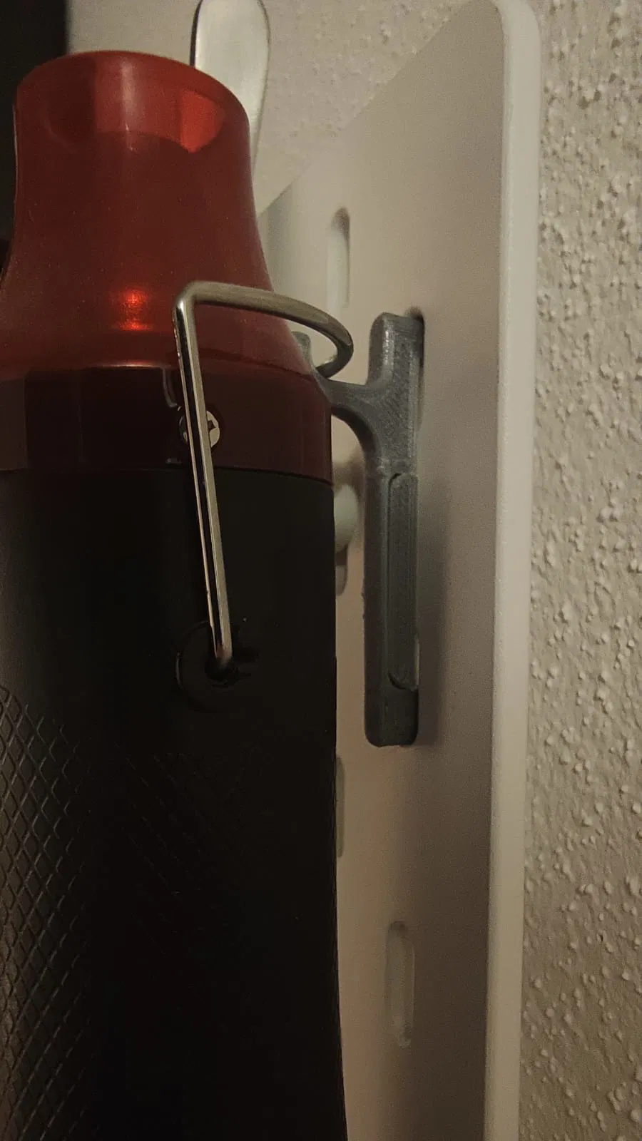 Việc gắn móc rất dễ dàng bằng cách trượt móc dưới vào bảng pegboard, bẻ cong nhẹ phần tử mỏng đàn hồi để móc trên có thể trượt vào rãnh phía trên móc dưới. Nếu cả hai móc đã vào vị trí và bộ phận tiếp xúc với bảng Skadis, thì bạn đã có thể treo các dụng cụ nhẹ. Để cố định phần tử đàn hồi, bạn có thể trượt miếng chêm (khối) ra phía sau nó để ngăn móc trên trượt xuống và rơi ra do trọng lượng của các vật treo.