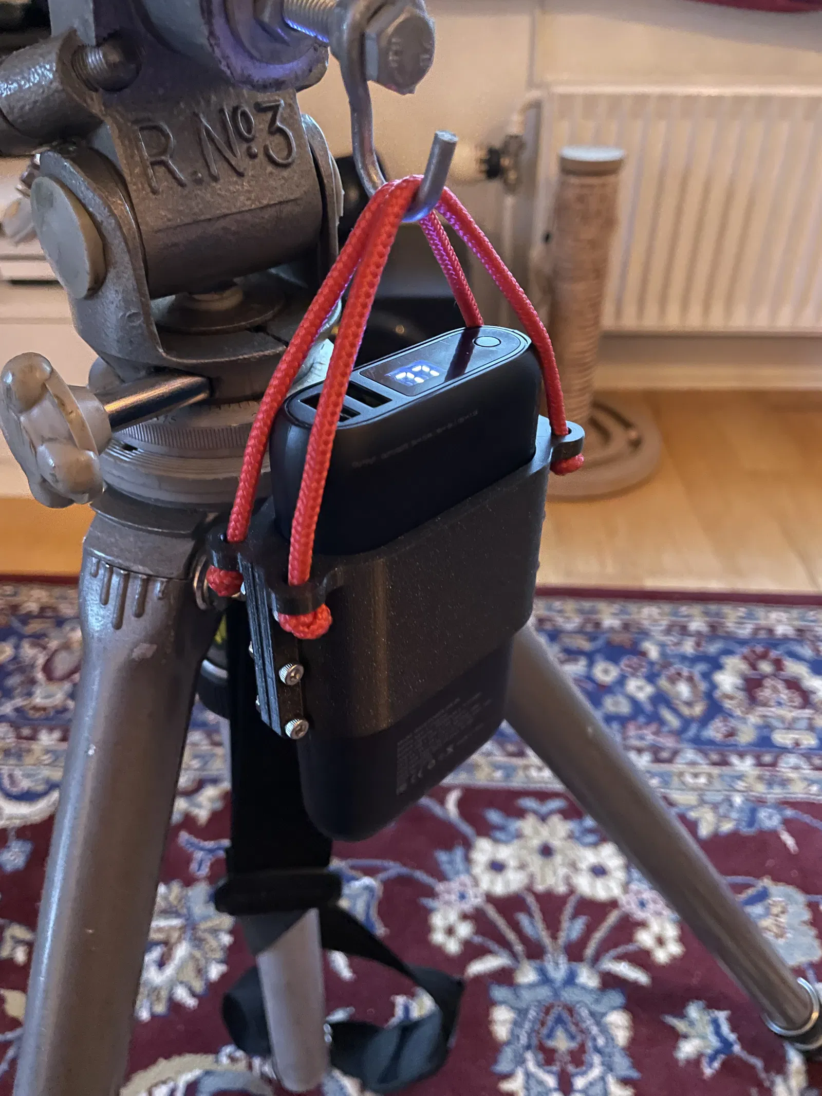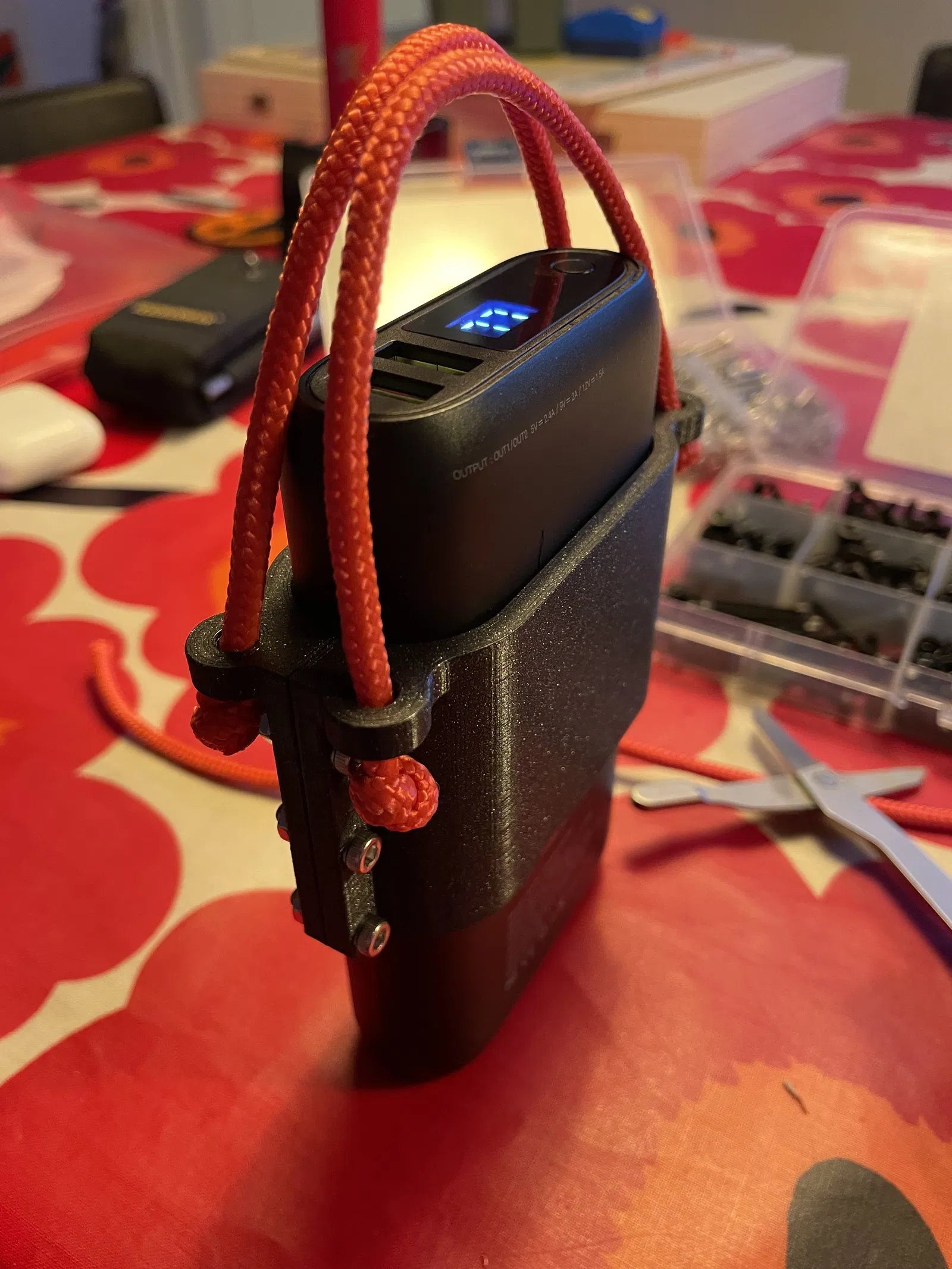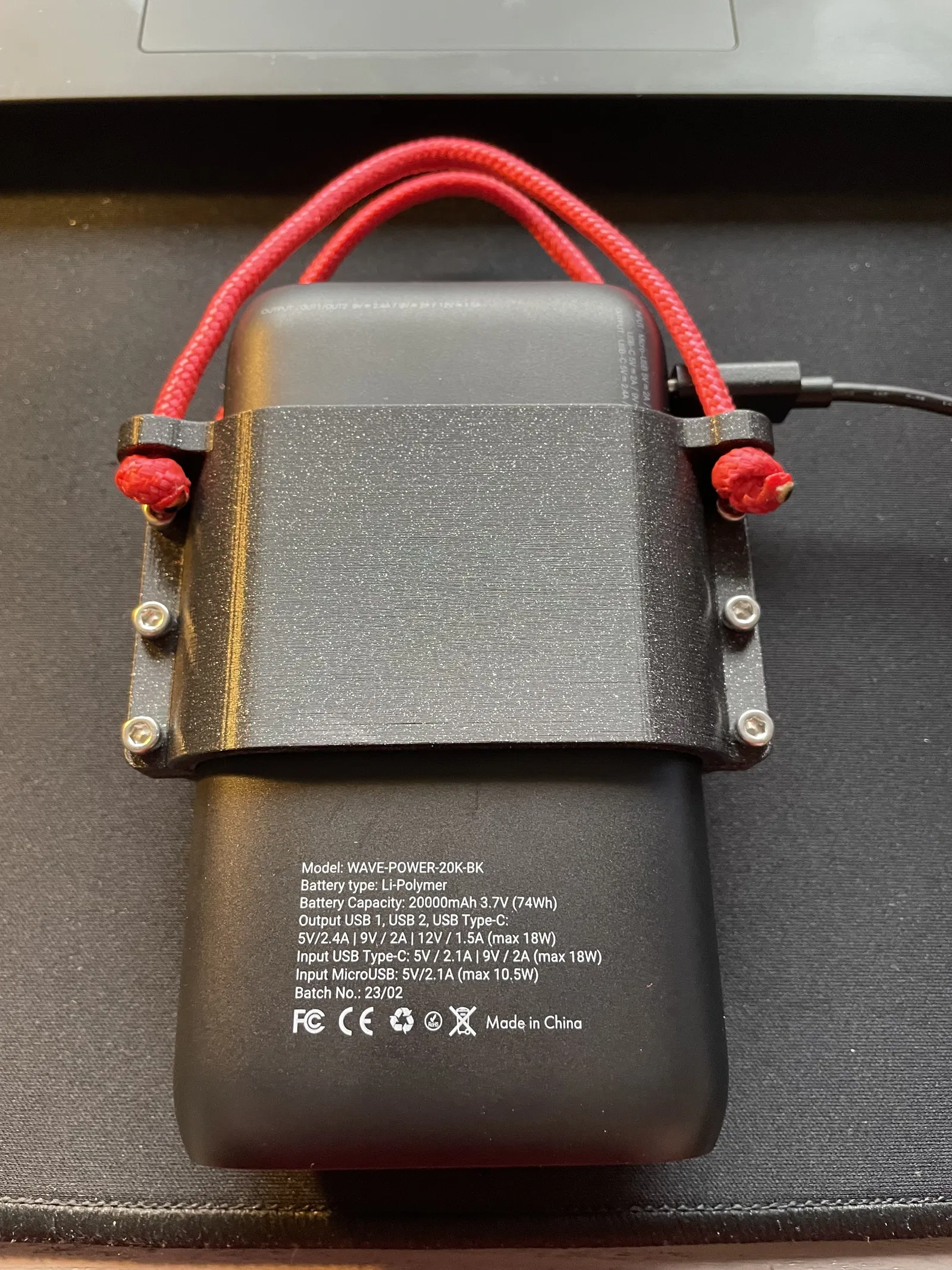 Cái đế đơn giản để treo cục sạc dự phòng Wave 20.000mAh. Không cần hỗ trợ khi in! Dùng kèm dây dù và ốc M3 để gắn chắc chắn. Thích hợp cho anh em quay phim, làm việc cần nguồn điện liên tục.