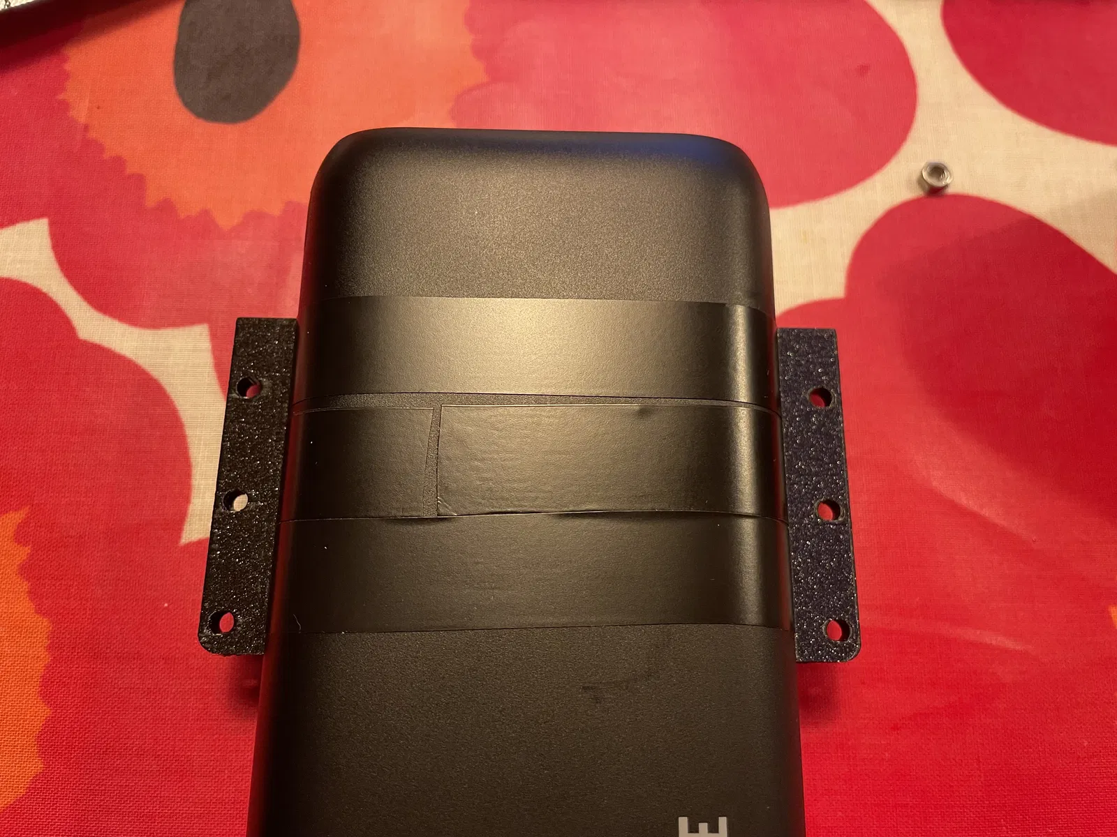 Cần 6 con ốc M3 và một ít dây dù 5mm. Tôi cũng thêm một lớp băng keo điện để đảm bảo bề mặt sạc dự phòng không bị trầy xước bởi đế giữ, và để chắc chắn nó sẽ không bị tuột ra.