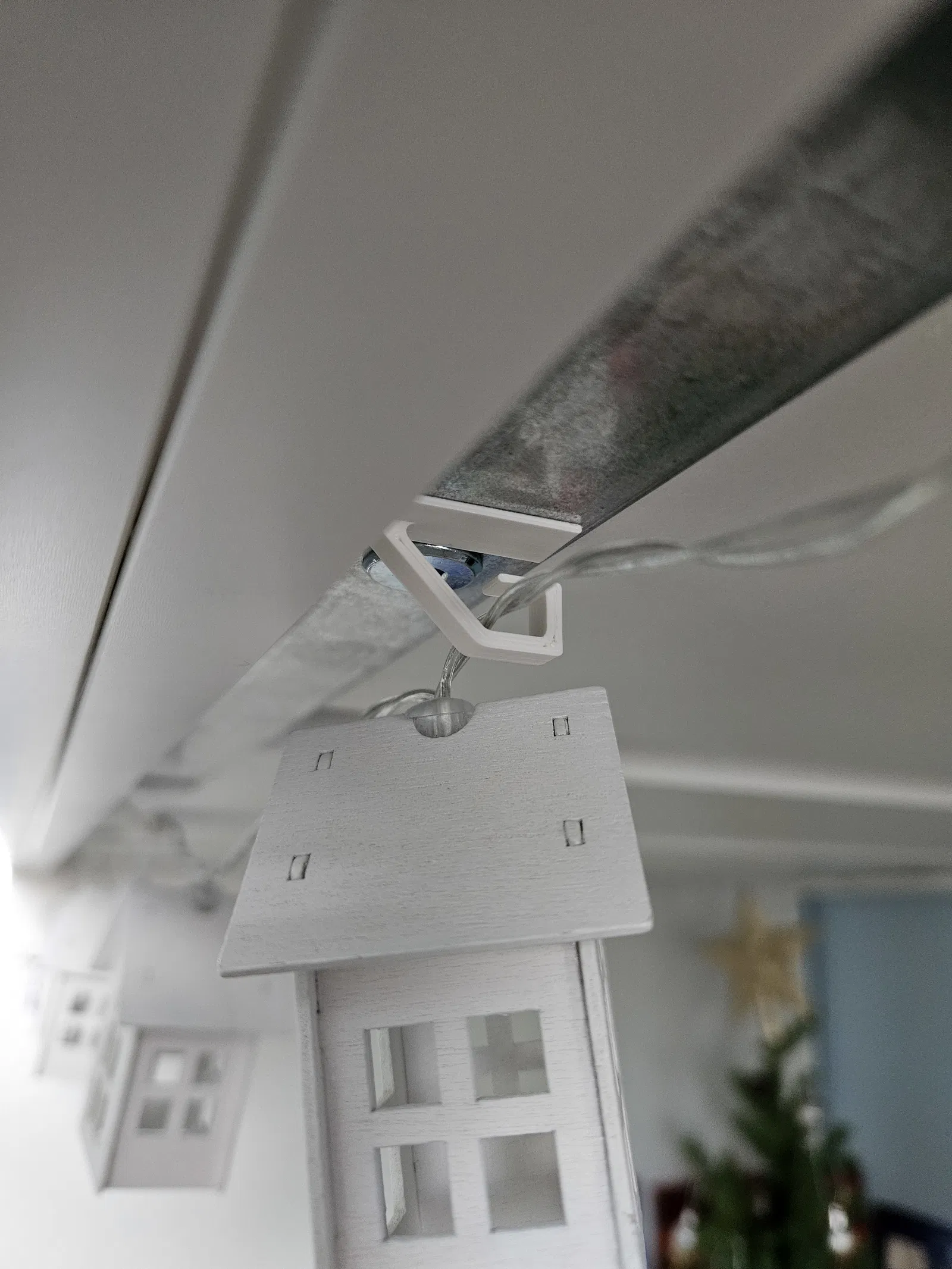 Cái móc treo dây đèn Giáng Sinh này đơn giản lắm, dùng để giữ dây đèn cho gọn gàng. Bạn có thể dễ dàng gắn nó lên tường bằng băng keo hai mặt. Infill 100% cho chắc chắn nha!