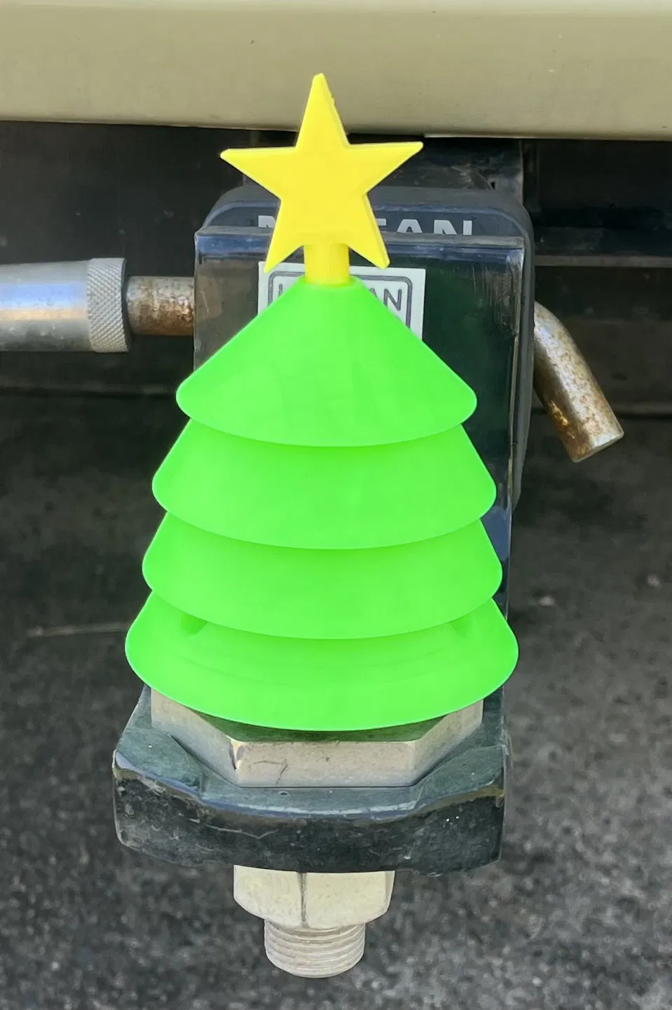 Một cây thông Noel độc đáo gắn cho phần móc kéo xe tải của bạn. Thiết kế này gồm 3 phần dễ in, giúp bạn có một vật trang trí Giáng Sinh ấn tượng mà không cần quá nhiều dụng cụ hỗ trợ phức tạp. Chúc bạn Giáng Sinh an lành và ấm áp bên gia đình!