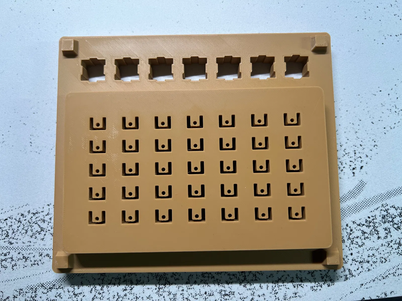 Mấy cái này dùng để xếp các stem cho mấy buổi tra keo switch nha. Cái lớn hơn thì có 7x16 lỗ để stem. Cái cỡ vừa thì đựng được 35 stem. Nó còn được thiết kế để xếp gọn với cái trạm tra keo 35 switch nữa cho tiện cất giữ.