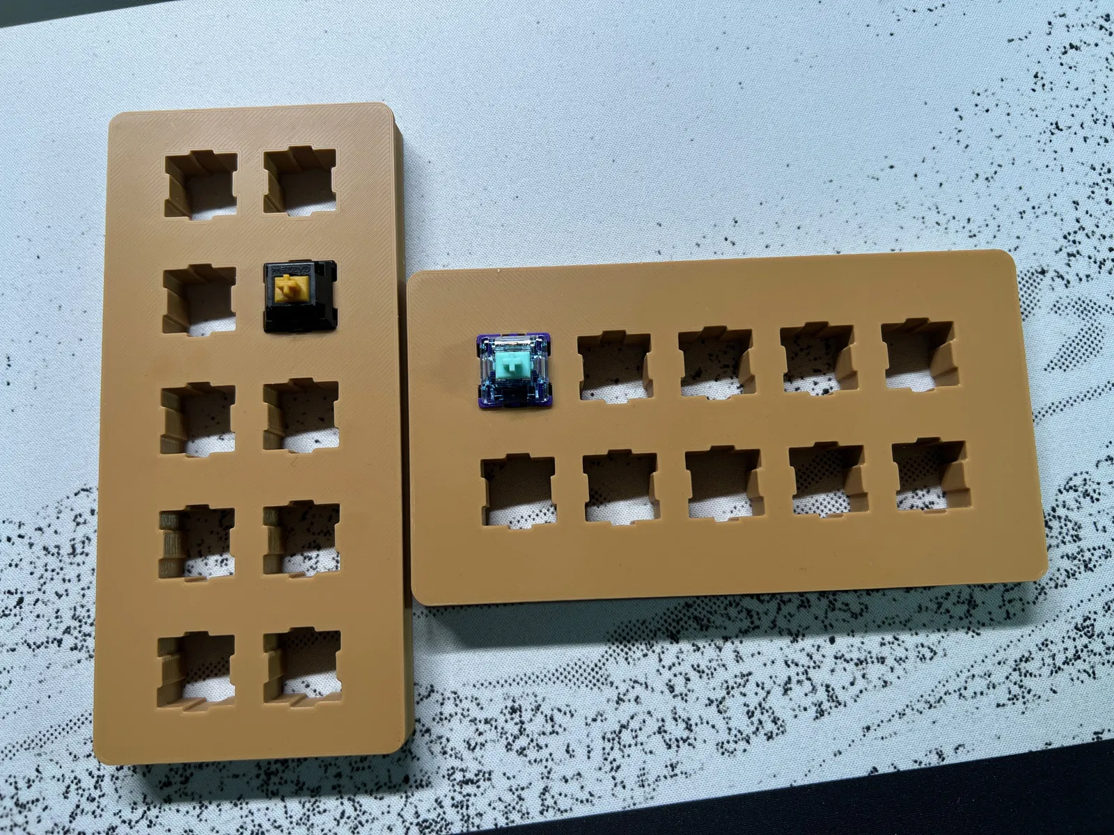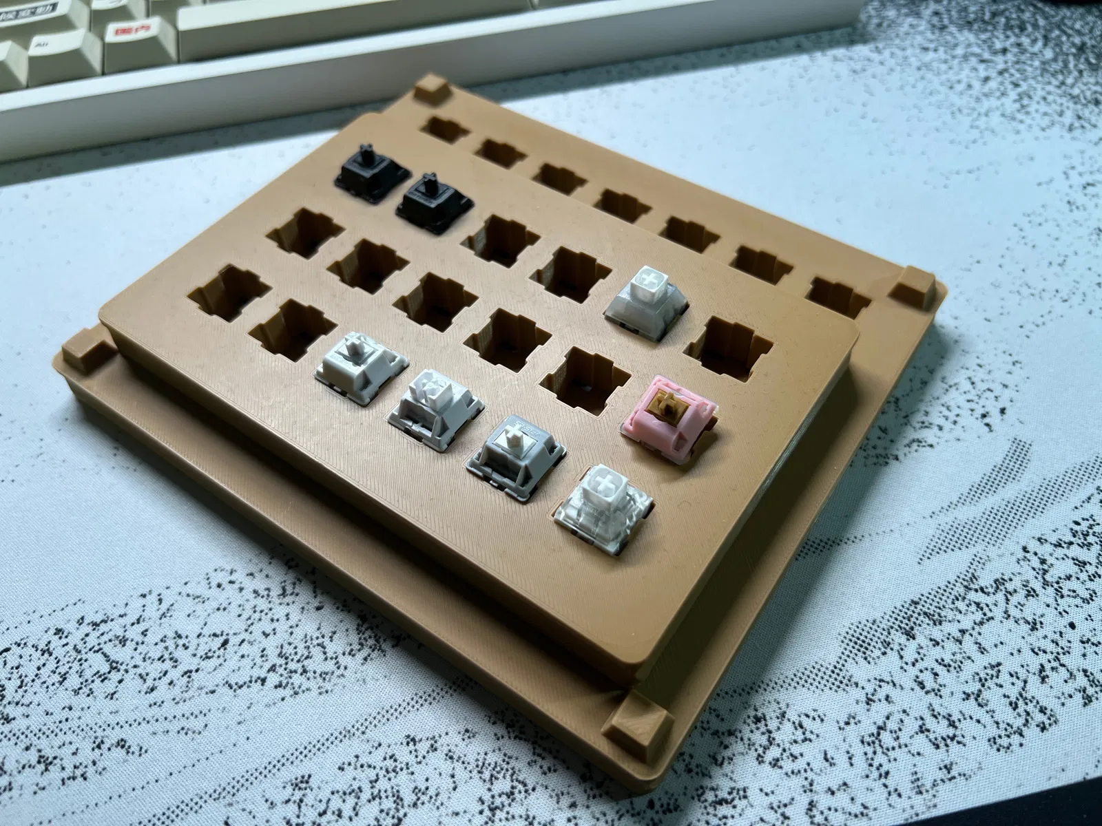 Trạm bôi trơn (lube station) cho switch bàn phím cơ. Tui có làm mấy cái dung lượng 35, 18 và 10 switch. Cái cầm tay có 2 kiểu cho bà con lựa chọn. Cái cỡ Trung bình được thiết kế để lồng vô cái lớn hơn để cất giữ gọn gàng. Với lại, cái giữ 18 stem cũng sẽ lồng vô trạm lớn được luôn nha.