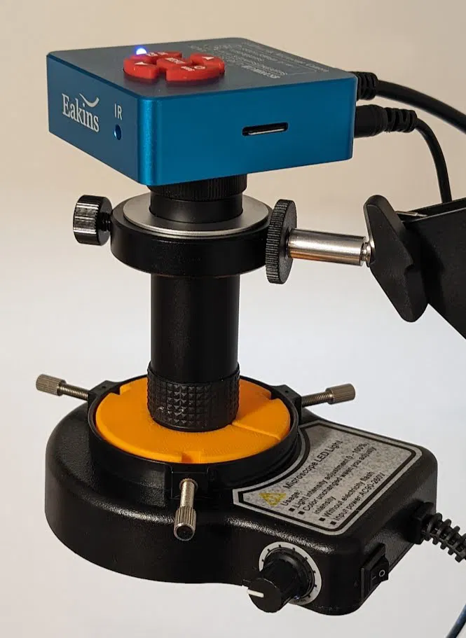 Mô hình này dùng để kẹp đèn Ring LED của Eakins (đi kèm bộ kính hiển vi) vào thân ống kính 28mm. Người dùng chia sẻ kinh nghiệm in bằng PETG, chỉ cần 10% infill để dễ siết vòng đèn.