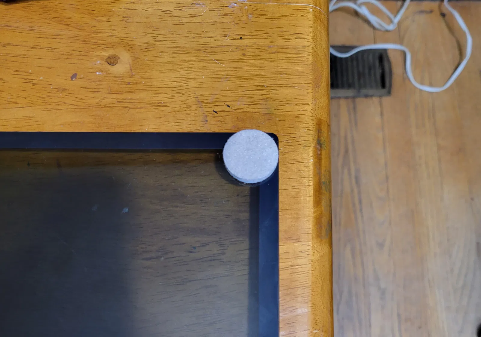 Tao không thích cái tiếng lọc cọc ồn ào của kính chạm vào nhựa in sợi filament. Tao đã đặt mấy cái chân tủ bằng nhựa tròn vô các góc kính để giảm tiếng ồn. Làm vậy thì nó vẫn hơi cao một chút và tao cũng không thích mấy cái khe hở. Bằng cách giảm chiều cao và khoét một cái rãnh trên nắp, giờ thì nó vừa vặn lắm luôn. Không cần in lại mấy cái ray cũ đâu, nó vẫn vừa.