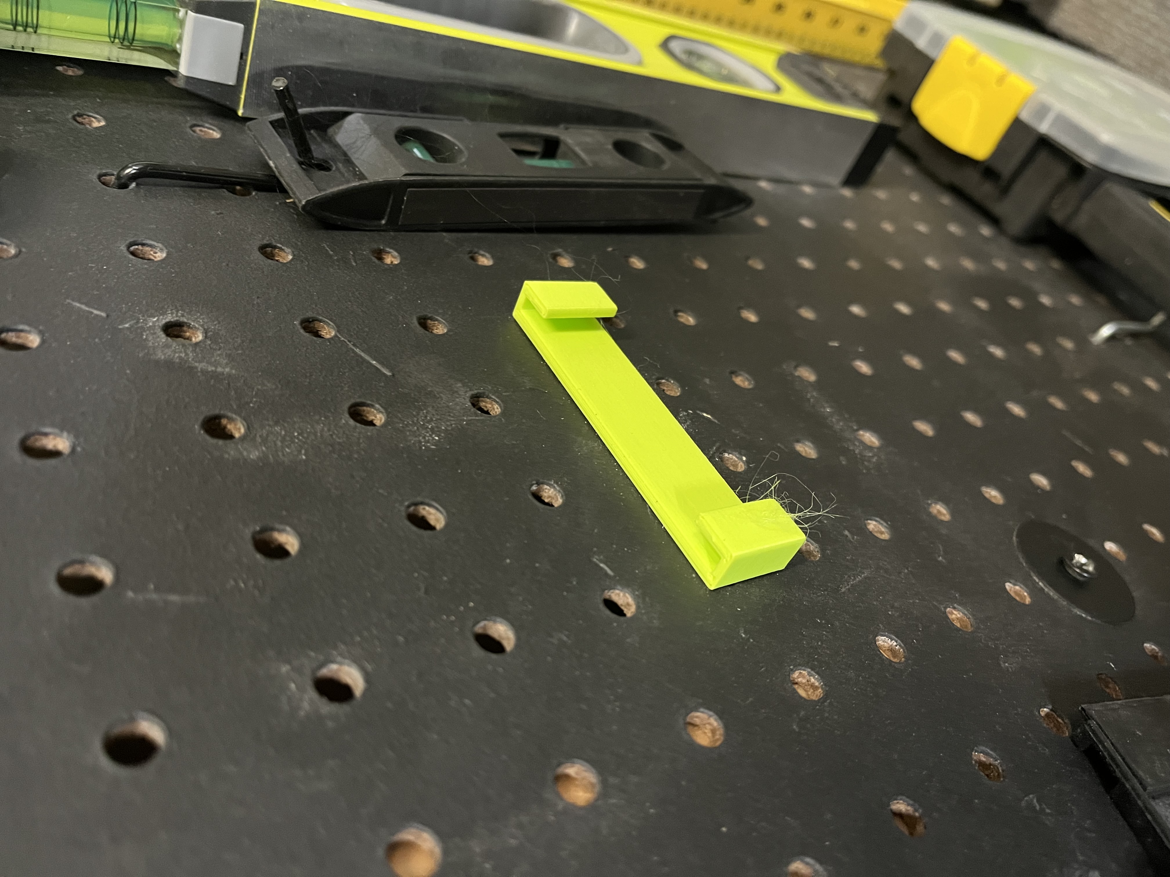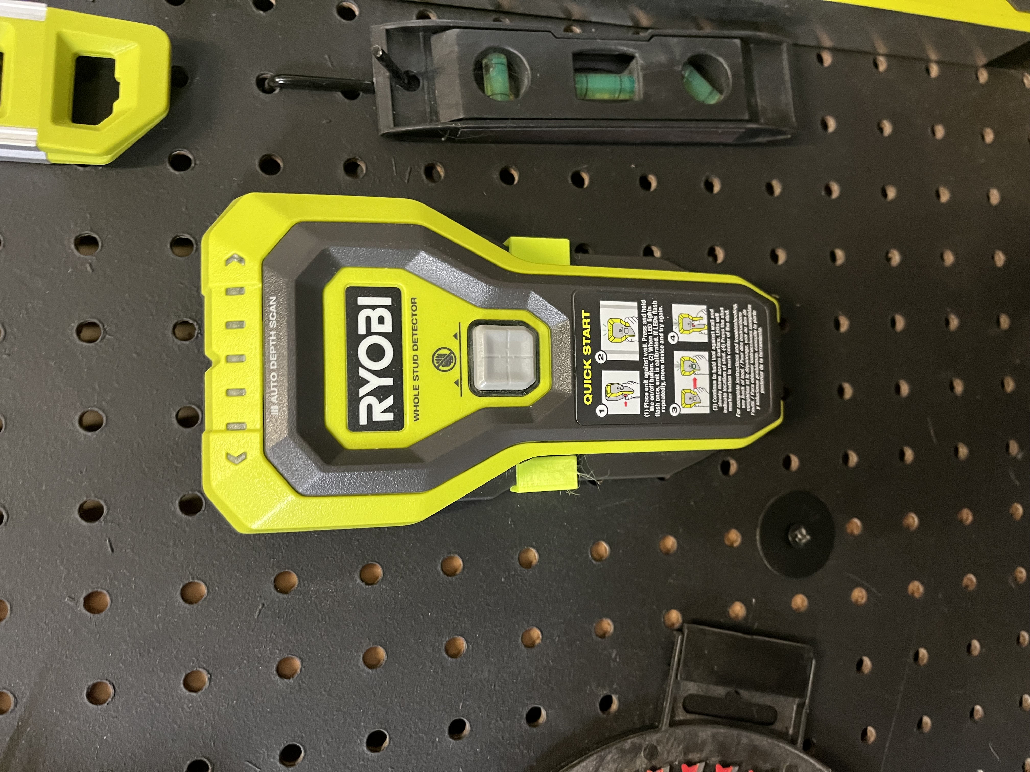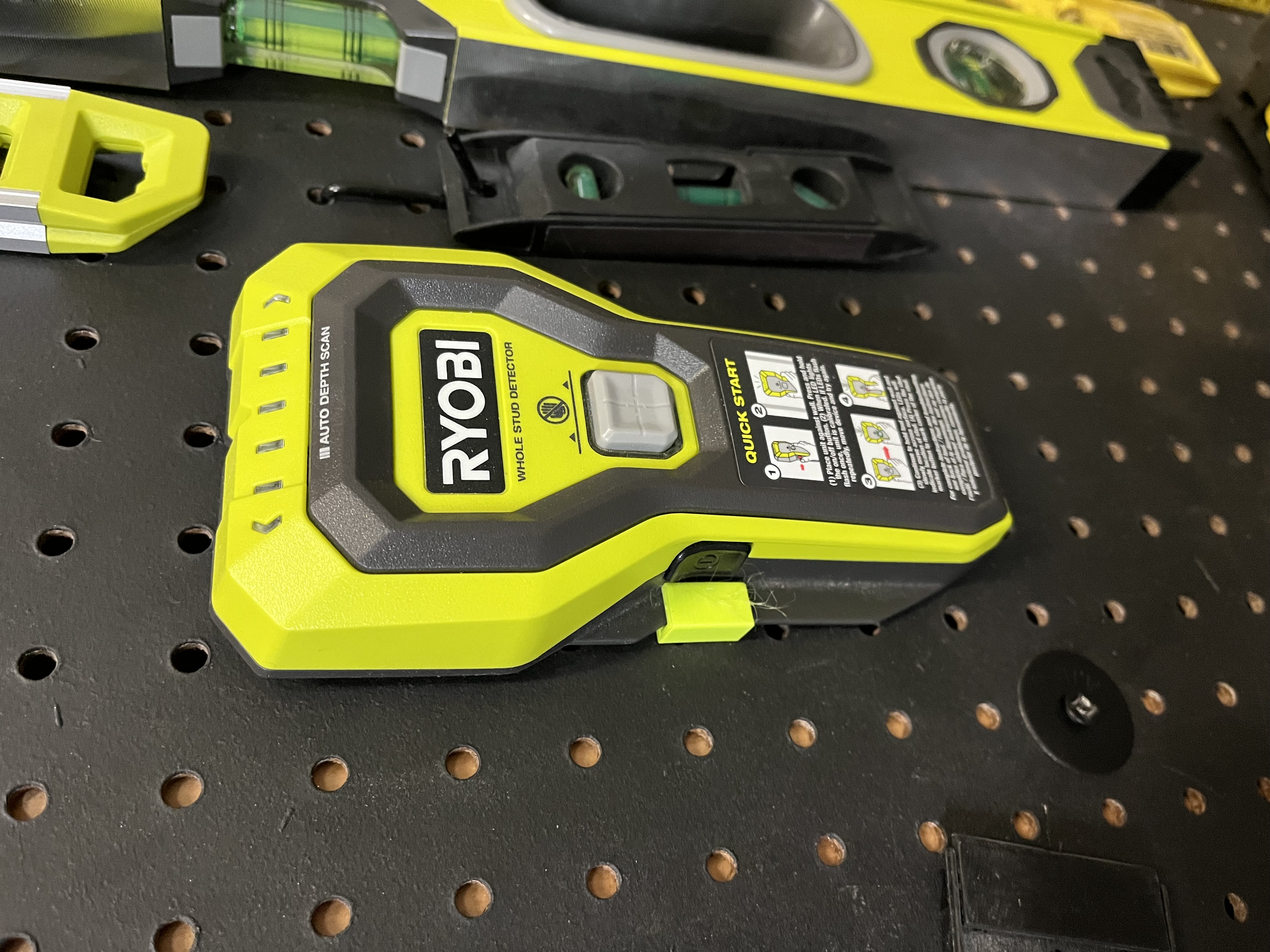Cần chỗ cất máy dò đinh tán RYOBI ESF5002 mà hết ngăn kéo? Kệ đi! Tui đã thiết kế cái giá treo lên tấm lỗ pegboard chuẩn 1/4 inch cho mấy ông đây. Làm bằng TinkerCAD, in dễ ẹc, chỉ cần ít supports thôi à. Tui in bằng PETG xanh cỏ đó nha!