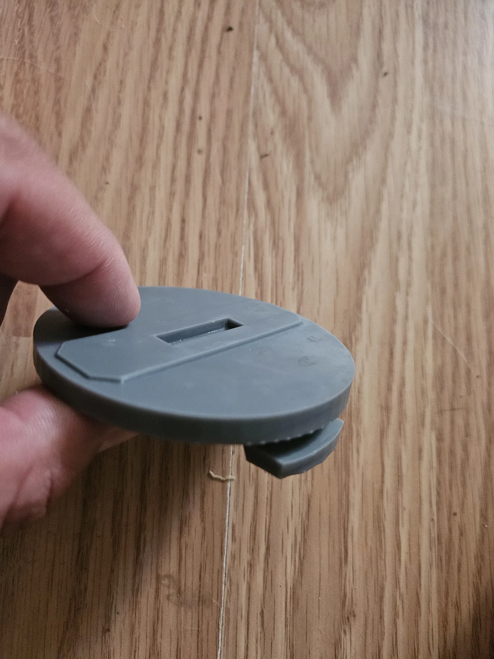 Nút bịt lỗ thoát nước sàn xe Polaris RZR. Loại bỏ phần gồ ghề cho bề mặt nhẵn mịn. Tôi đã dùng hỗ trợ (supports) cỡ trung bình với 50% mật độ lấp đầy, và đặt mô hình nghiêng khoảng 42 độ. Nếu cần, tôi sẽ cung cấp file có hỗ trợ.