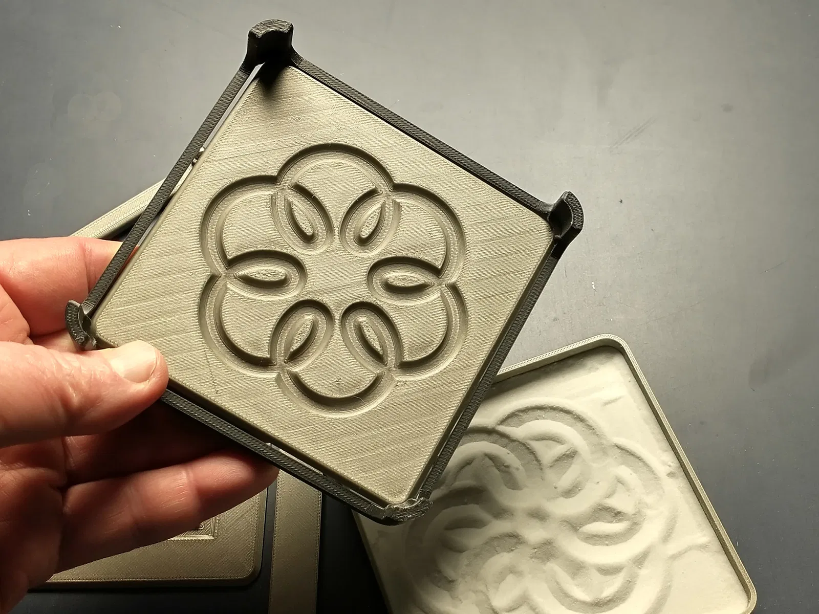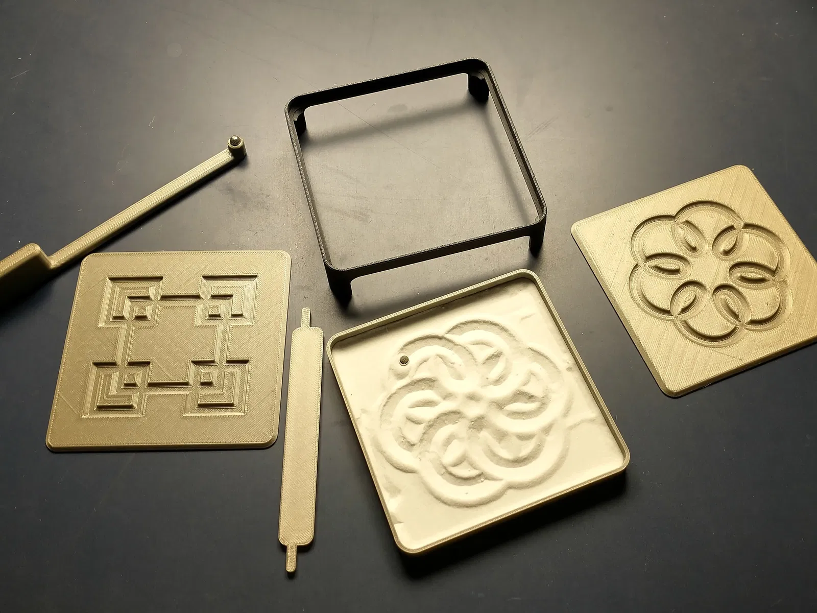 Tôi đã bao gồm hai tệp mẫu - một mẫu cánh hoa xoáy và một mẫu hình vuông. Tôi cũng đã bao gồm một tấm mẫu trống có thể tùy chỉnh với thiết kế của riêng bạn. Các rãnh trong tấm mẫu nên rộng 5.4mm và sâu 2mm.