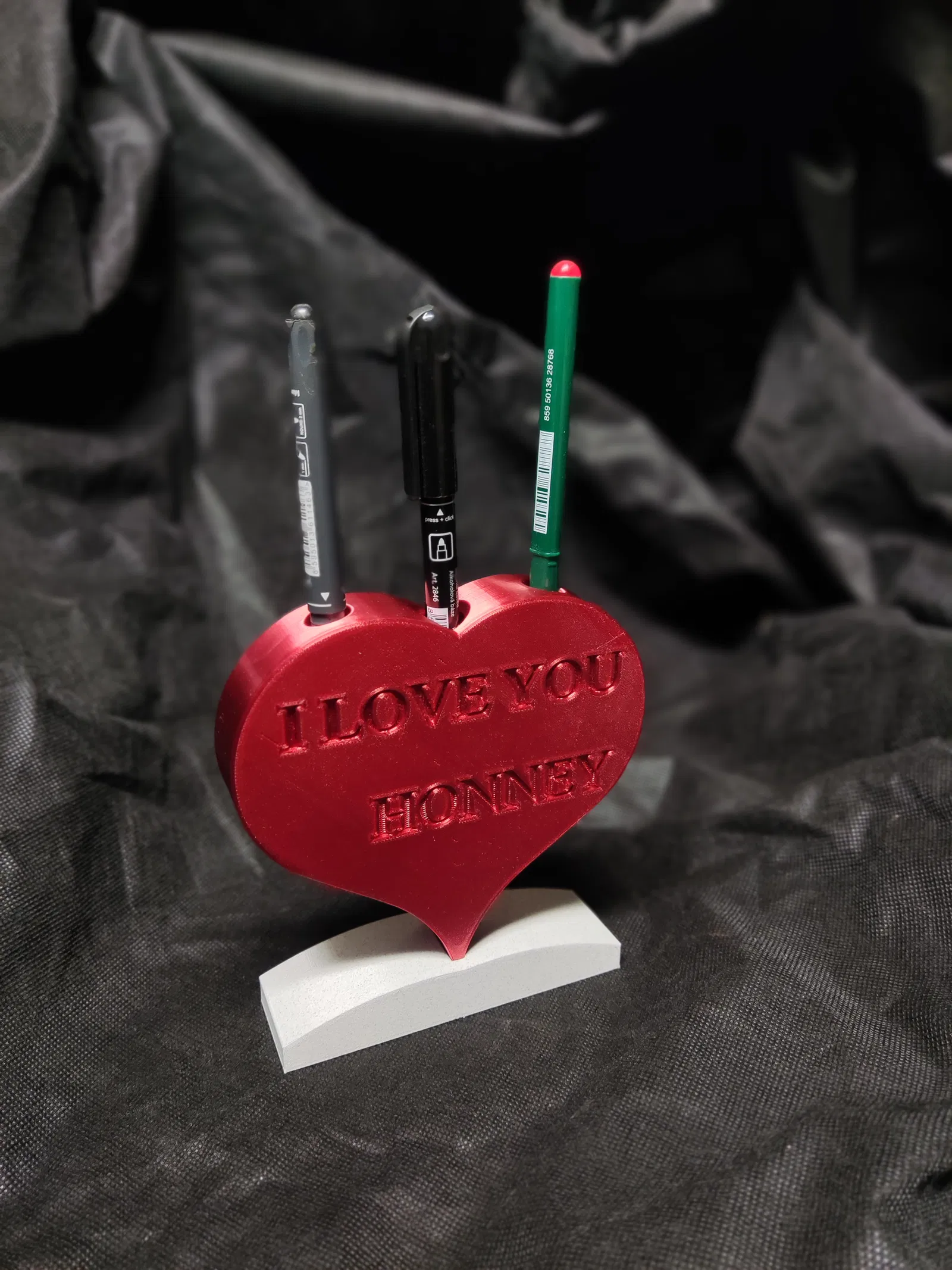 Hộp đựng bút cho "gấu" của bạn. Mẫu in 3D này được thiết kế hình trái tim độc đáo, hoàn hảo để làm quà tặng. Chất liệu PLA phù hợp với nhiều màu sắc như đỏ, trắng, hoặc hiệu ứng marble, silk.