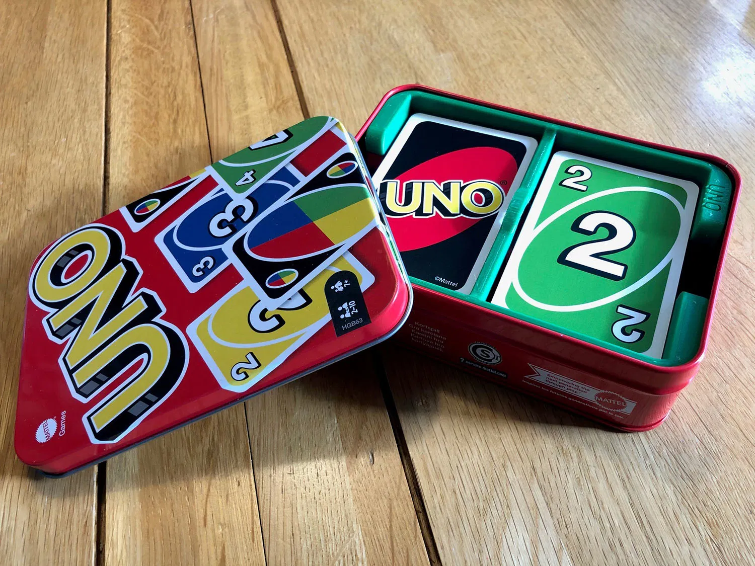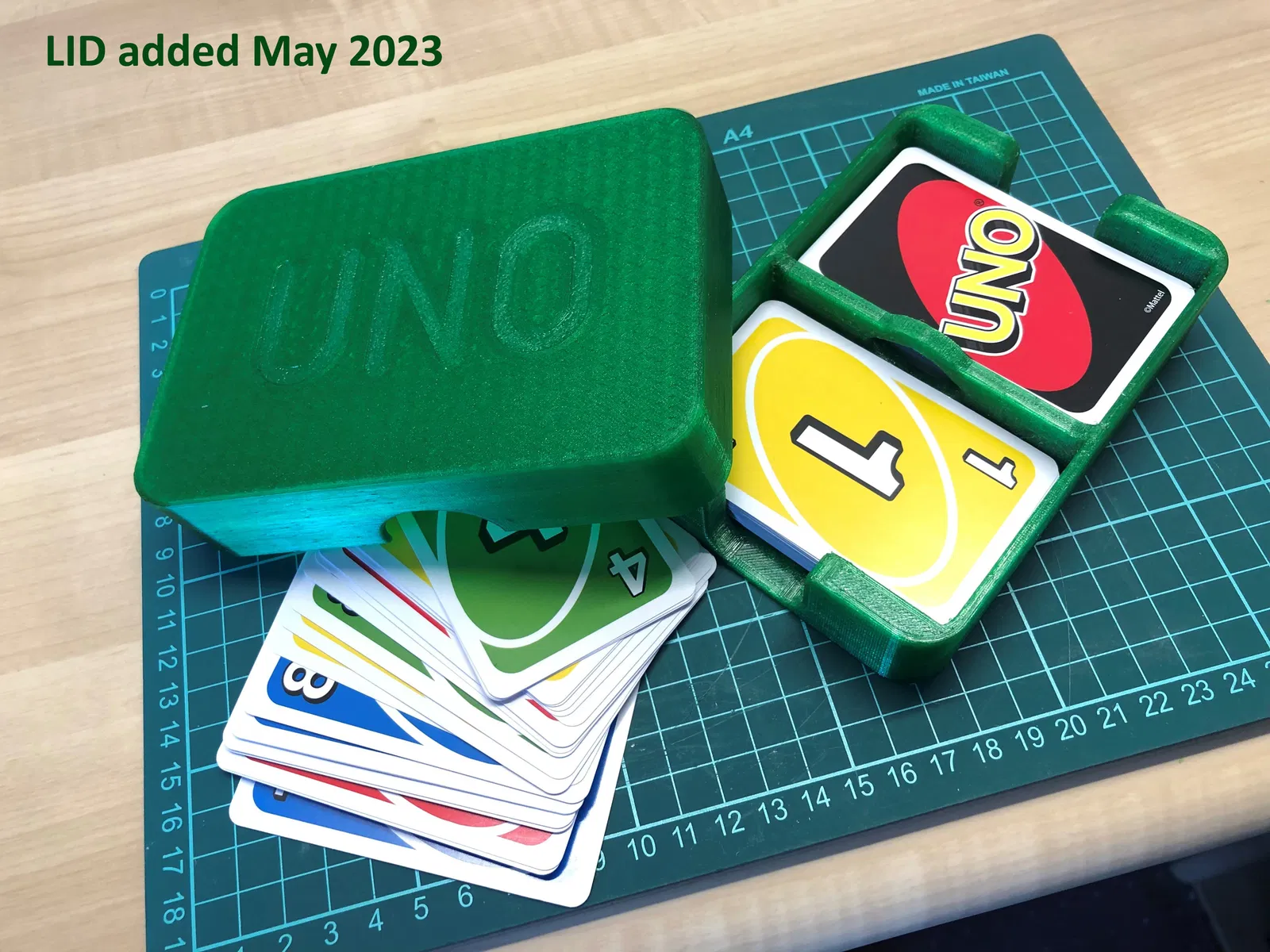 Hộp đựng bài 'Rút & Bỏ' cho các ván bài UNO, nay có thêm nắp đậy tiện lợi. Giữ vừa hai bộ bài tây, có thể in bằng PETG. Kích thước vừa vặn vào hộp UNO gốc hoặc dùng như một hộp cất bài độc lập.