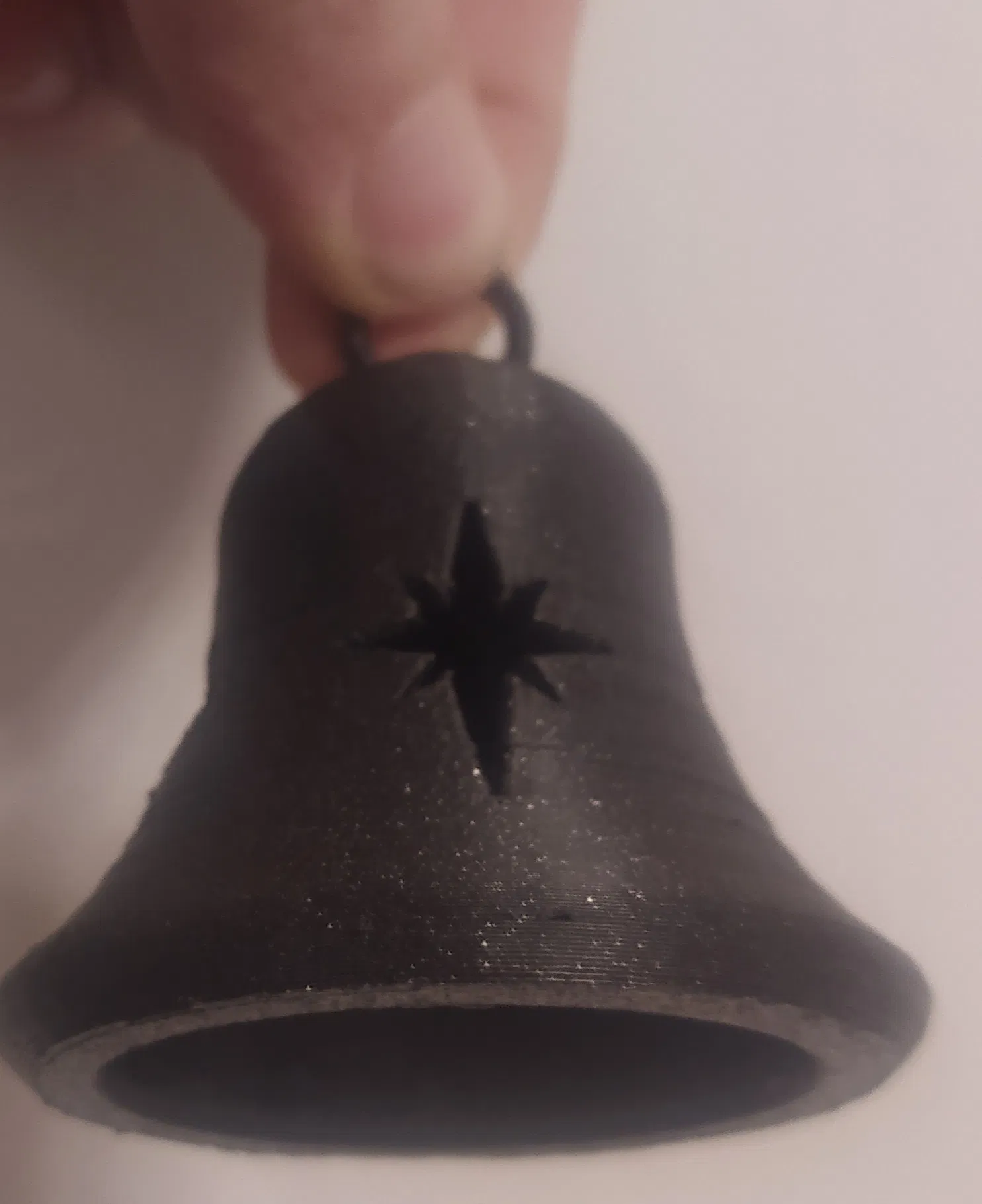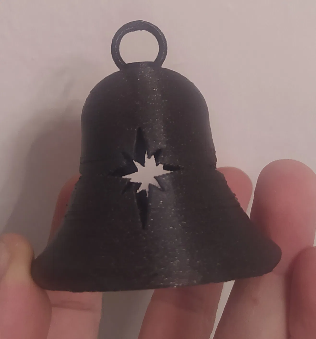 Hôm nay tui thử làm một quả chuông Noel nhỏ xinh. Tui in bằng sợi Galaxy PLA đen. Lưu ý là phần sao và mắt cần dùng support khi in.