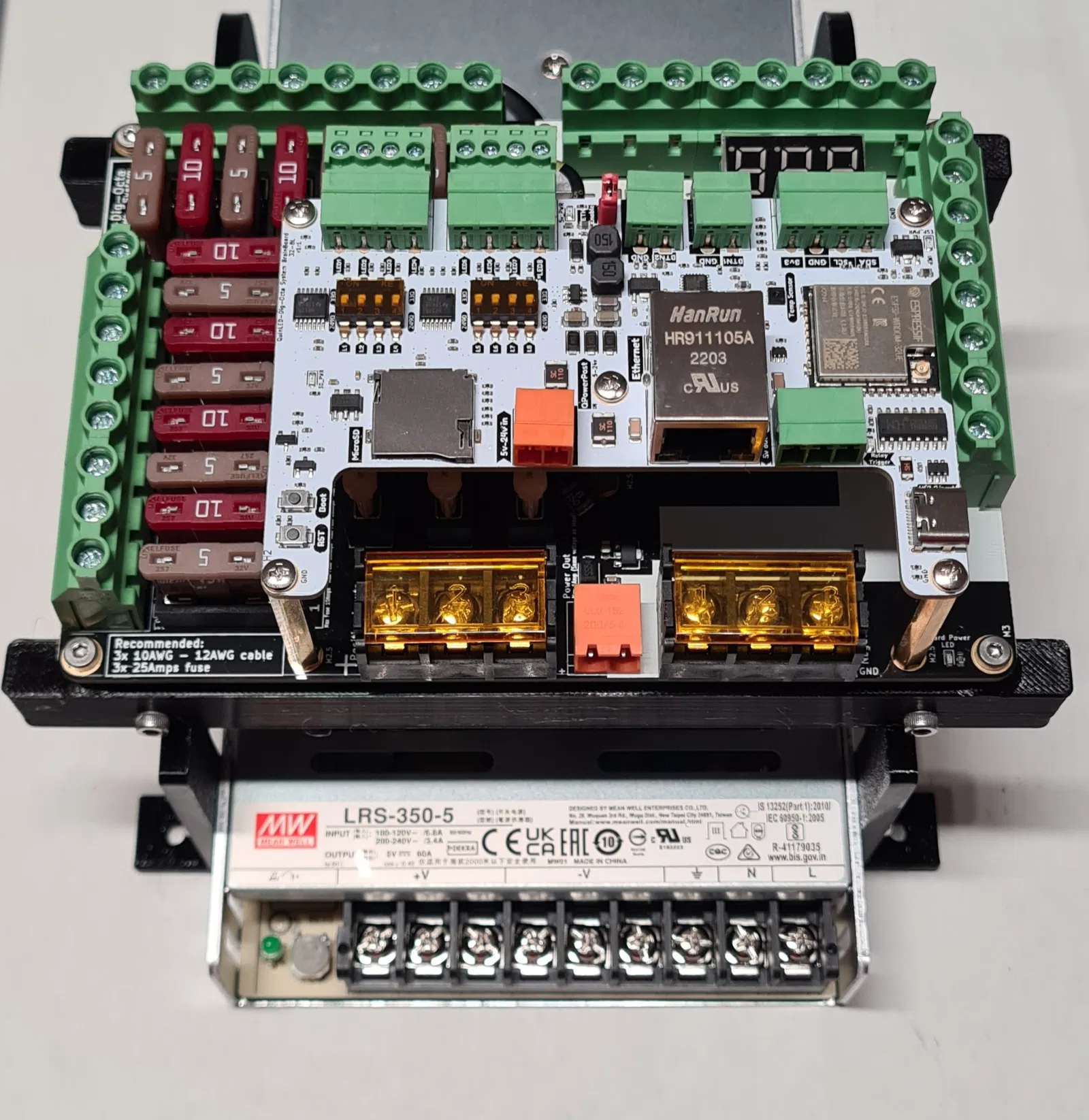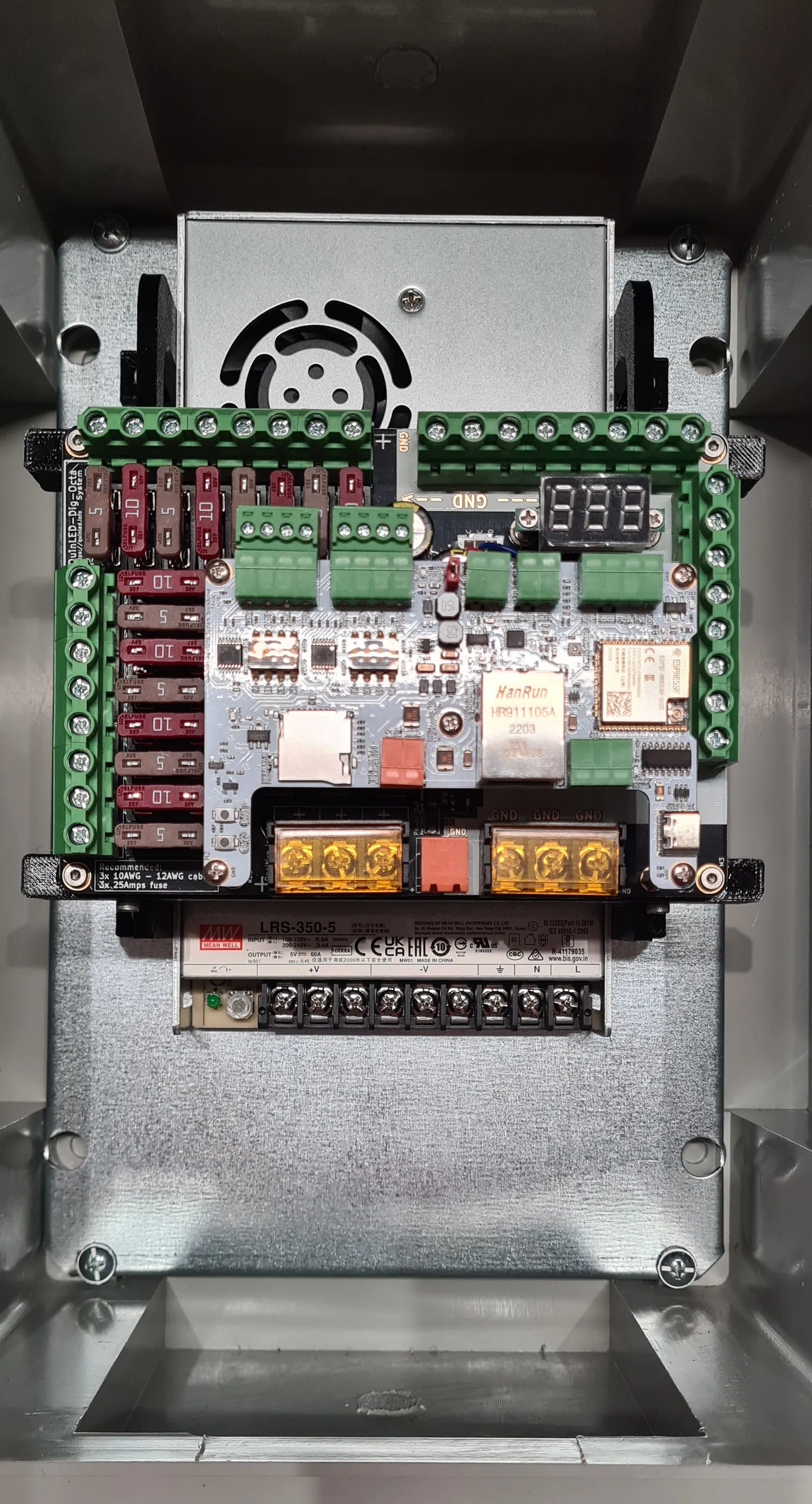 Tui cần một cái khung để gắn bo mạch QuinLED-Dig-Octa Power 7 và Brain lên trên cục nguồn Mean Well LRS-350 cho dự án đèn LED Giáng Sinh của mình.