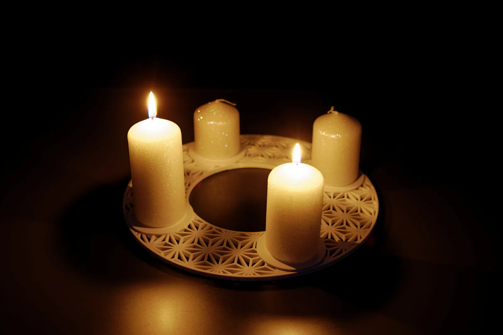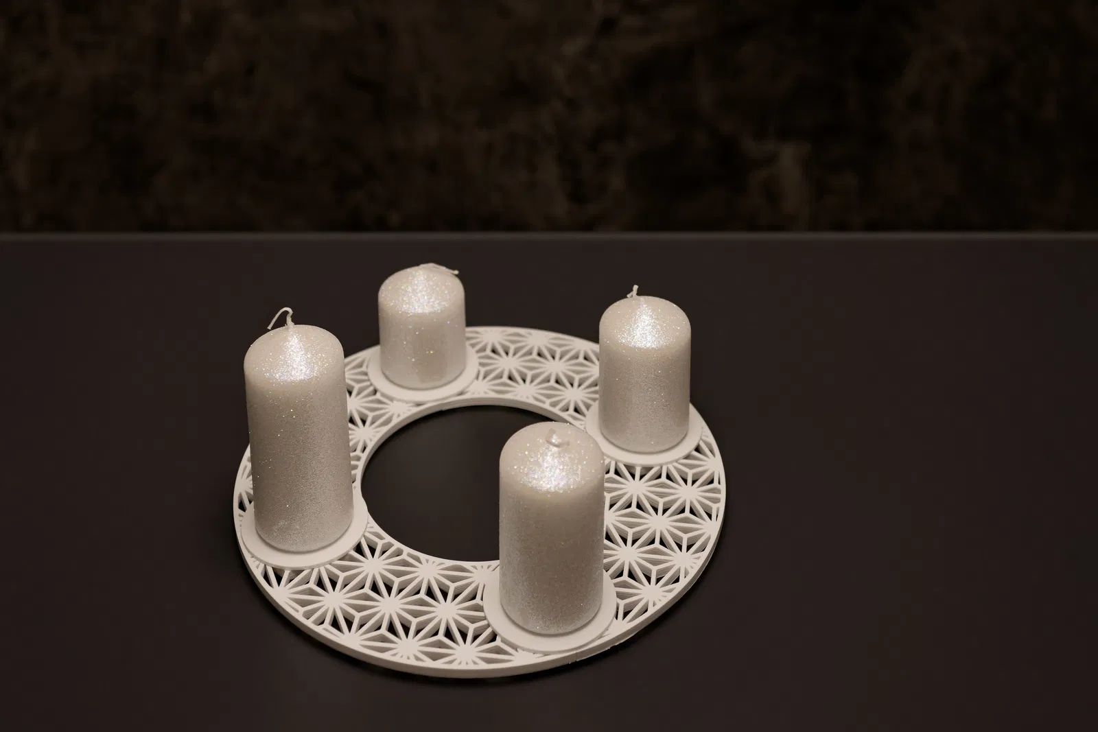 Vòng nguyệt quế Mùa Vọng hiện đại, được thiết kế cho 3D printing, có thể chia nhỏ và tích hợp giá đỡ nến. Thiết kế tối giản, dễ in ấn, phù hợp với nến Mùa Vọng tiêu chuẩn, mang đến vẻ đẹp đa năng và hiện đại cho trang trí mùa lễ.